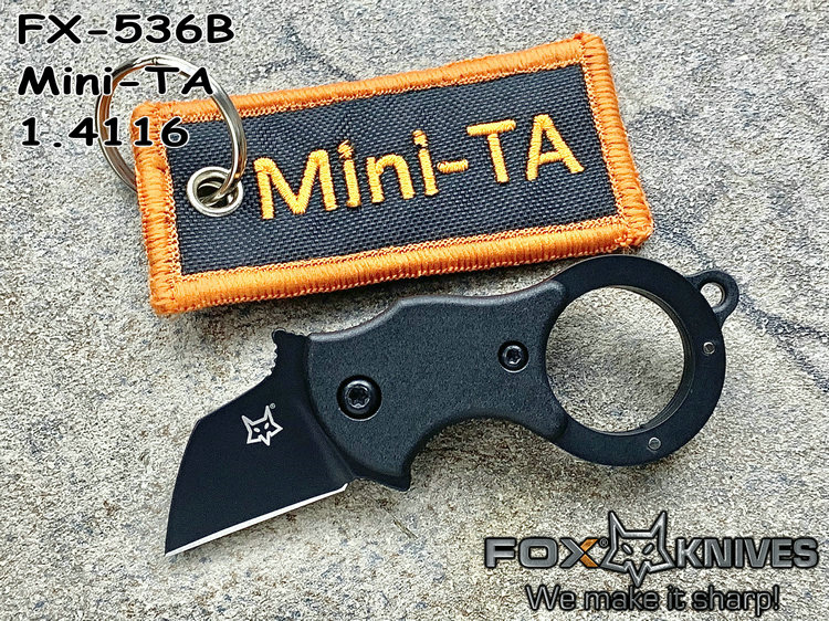 简单描述: FOX 意大利狐狸 FX-536B Mini-TA 1.4116刃材 黑色FRN柄 指环爪刀