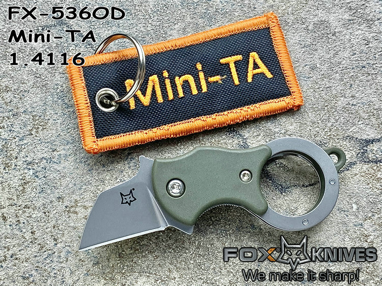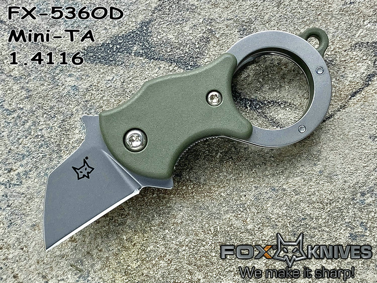 简单描述: FOX 意大利狐狸 FX-536OD Mini-TA 1.4116刃材 军绿色FRN柄 指环爪刀