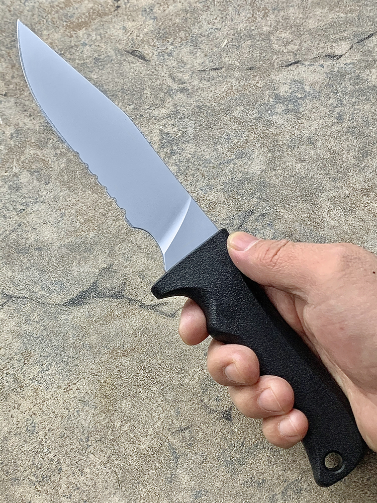 "平民疯狗"美国马盖先战术直刀,正如美国马盖先的包一样,美马疯狗,同样,以耐操为其不变的追求。平价不平庸,疯起来连自己都怕,全然不输老凯文的MADDOG背敲劈开N根木桩,还能削纸,不但耐操,而且极为锋利。刃材采用德国D2 外层镀硬铬(类似原版疯狗表面处理方法)工艺:二次热处理加冷处理 符合人体工程学的二次注塑尼龙手柄表面防滑处理。