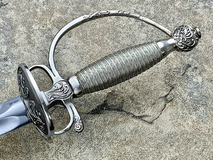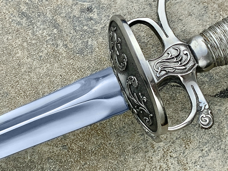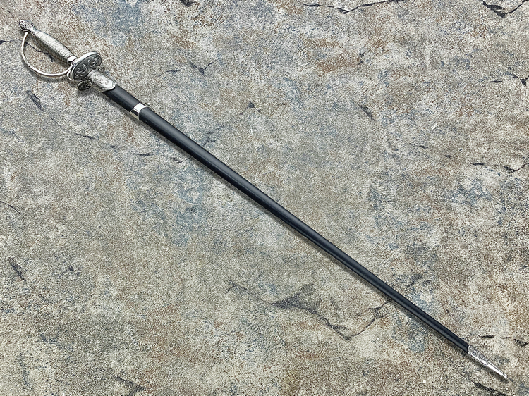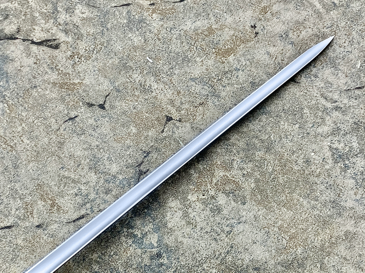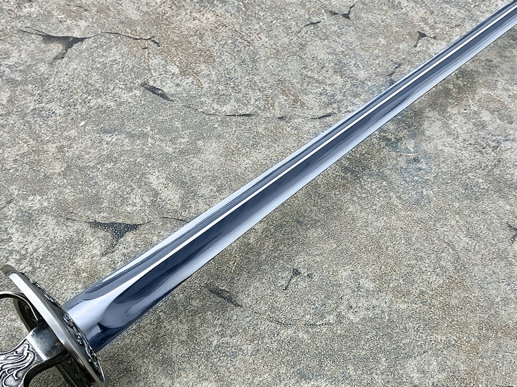 这款剑的优势在十六世纪末期变得越来越明显,剑身很长,优雅而强悍,成为当时平民自卫的最佳选择。尤其当它在狭窄拥挤的街道和小巷中更胜过那些笨拙的武器。此款剑在十七世纪末期演变成为更短更轻的全新武器,平民平时佩戴长剑成为了当时时尚的一部分。他主要优点是坚硬、轻巧的刃身,和及具有杀伤力的三角外形使它成为了一把非常致命的武器,并且很方便挂在腰上或者是肩上。冷钢这款西洋剑完美的复制了原始的刀型、重量、和三角形的界面以及致命的剑尖,实用现代高碳钢1060进行了优秀的热处理,体现了这款西洋剑的完美、平衡、轻盈。