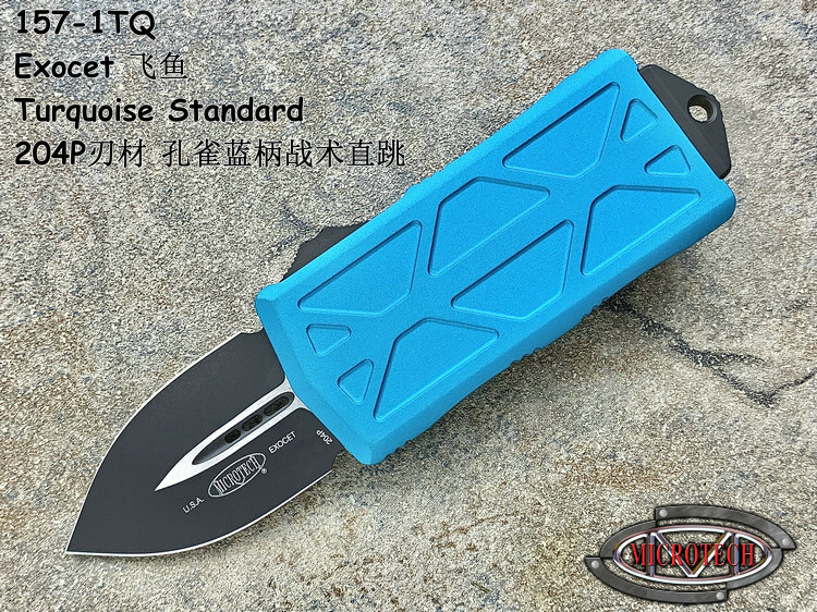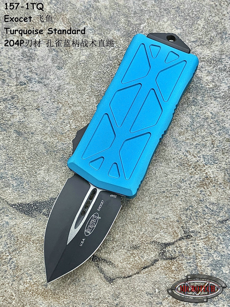 Microtech 微技术 157-1TQ Exocet 飞鱼Turquoise Standard 204P刃材 孔雀蓝柄战术直跳(暂无现货)