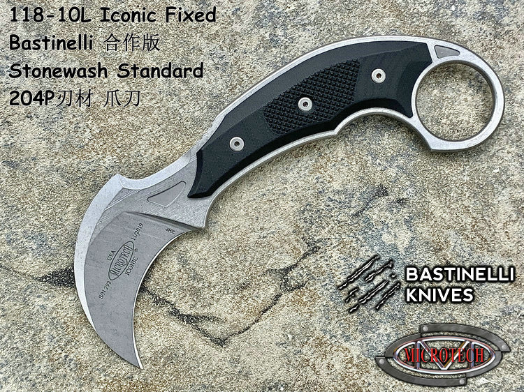 简单描述: Microtech 微技术 118-10L Iconic Fixed Bastinelli Stonewash Standard 204P刃材 巴斯蒂内利合作版 战术爪刀