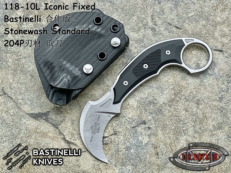 Microtech 微技术 118-10L Iconic Fixed Bastinelli Stonewash Standard 204P刃材 巴斯蒂内利合作版 战术爪刀(暂无现货)