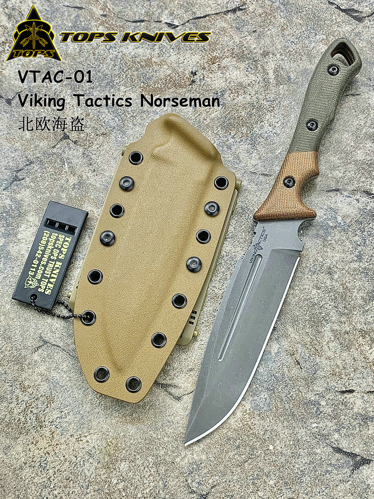 TOPS(Tactical OPS USA )战术行动 VTAC-01 Viking Tactics Norseman 北欧海盗 双色米卡塔柄战术直刀