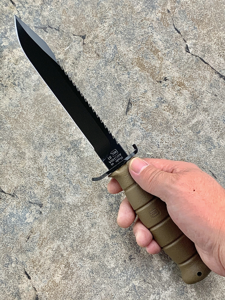 1981年列装的FM81刺刀,与FM78唯一的变化就是刀背上增加了锯齿。