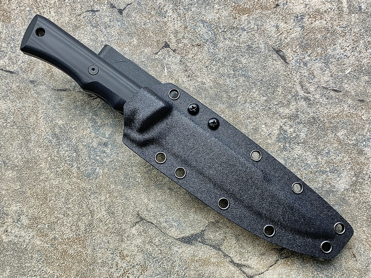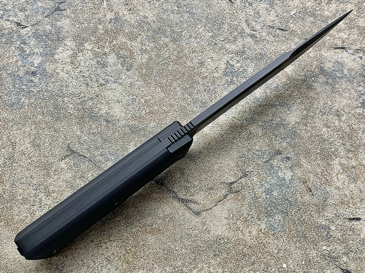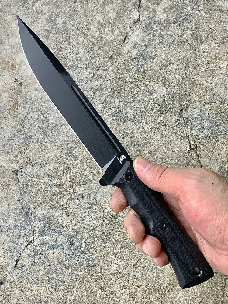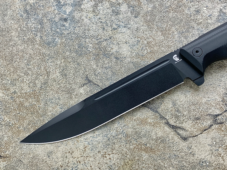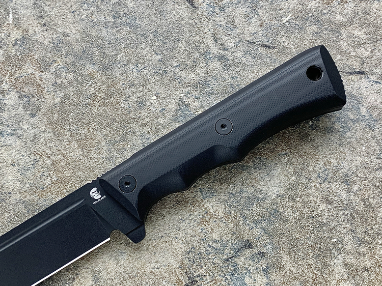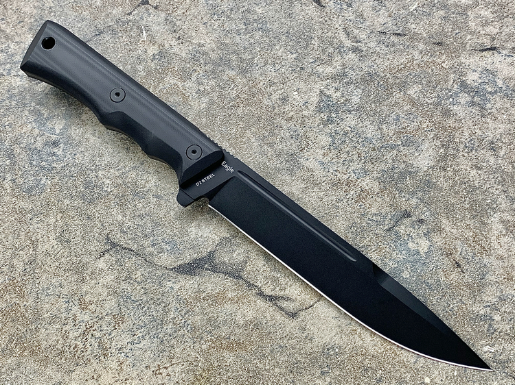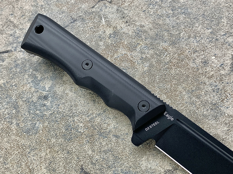 该刀Eagle是Military军刀系列的经典款式,刀身修长距刀尖69mm处开假刃以提升穿刺能力,4.5mm厚的D2刃材经科学热处理后硬度达到60-61HRC,符合人体工学的G10手柄操控性极强。