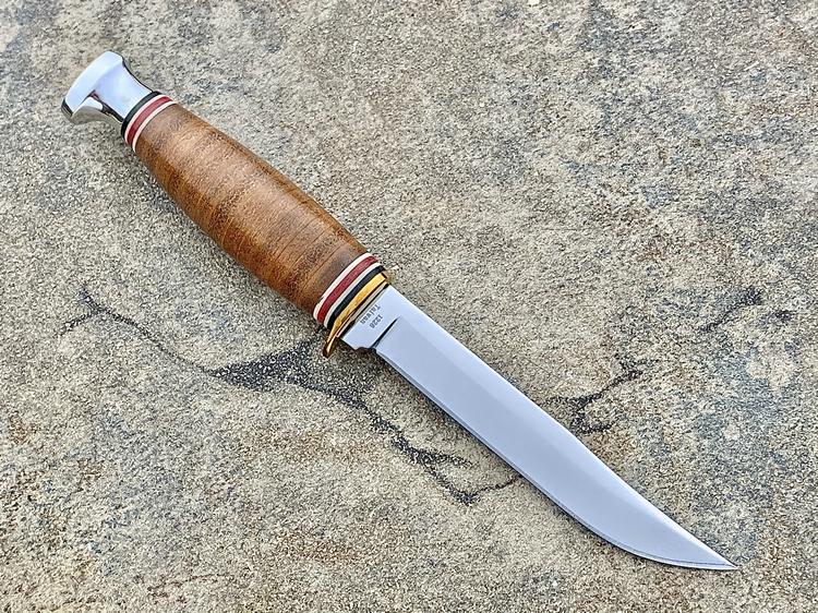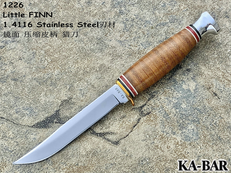 简单描述: KA-BAR 卡巴 1226 Little FINN 1.4116 Stainless Steel刃材 镜面 压缩皮柄 猎刀