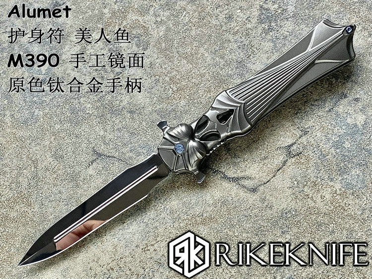 Rike Knife Alumet 护身符 美人鱼 M390手工镜面 原色钛合金手柄 双锋折刀