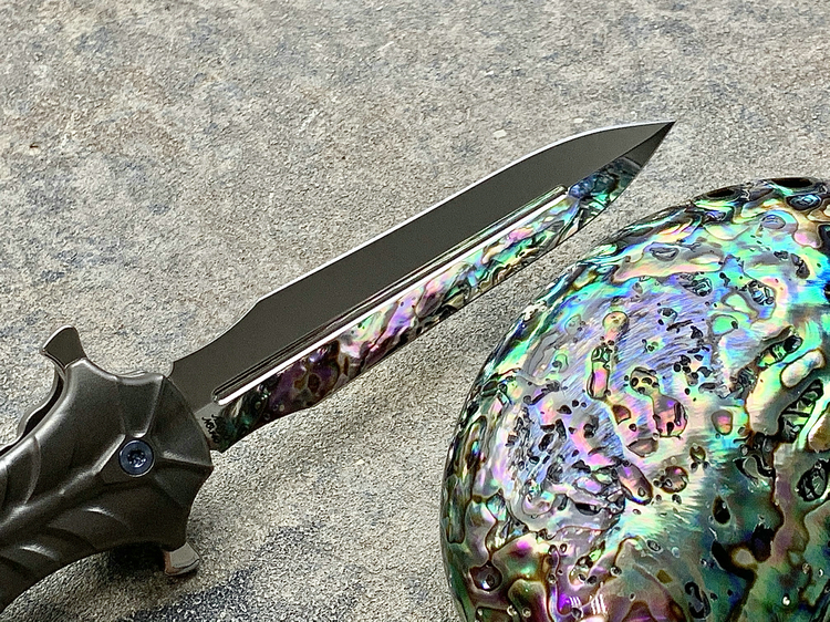 护身符 采用M390手工镜面双锋刀刃,手柄为钛合金雕刻美人鱼造型独特美观,收藏把玩兼备的精品