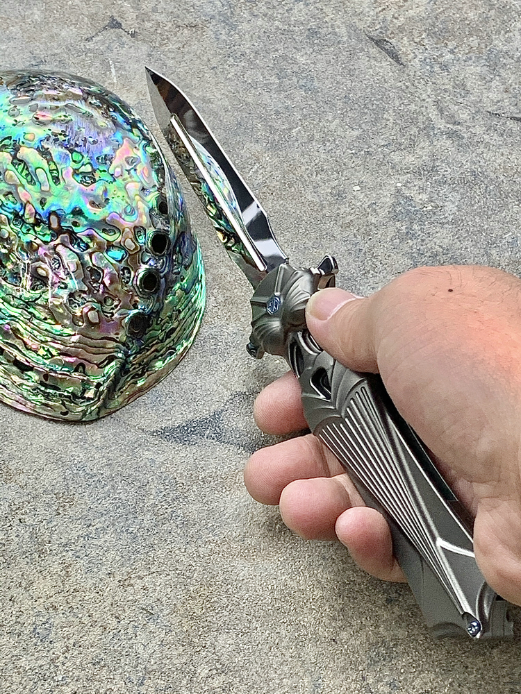 Rike Knife Alumet 护身符 美人鱼 M390手工镜面 原色钛合金手柄 双锋折刀(现货)