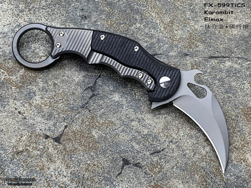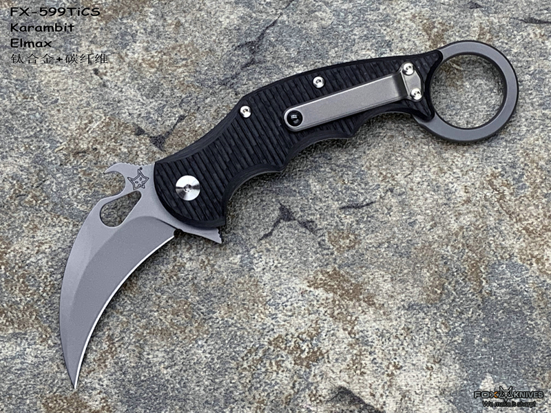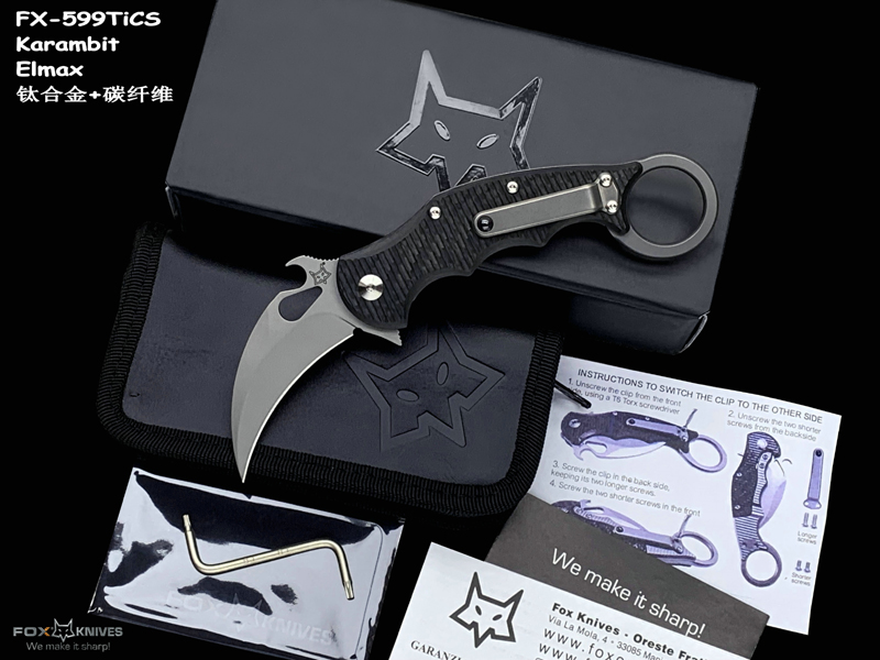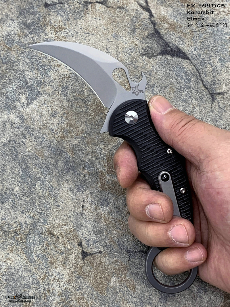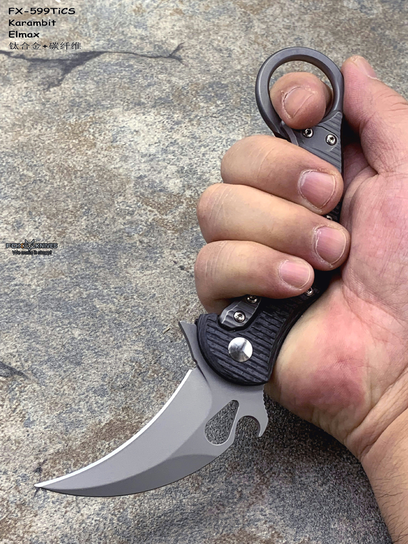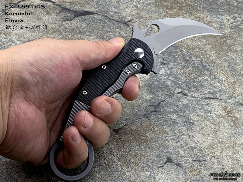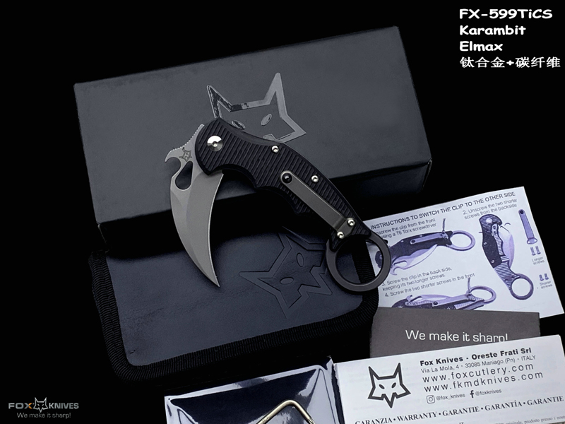 FOX 意大利狐狸 FX-599TiCS Karambit Elmax刃材 碳纤维+钛合金柄 指环爪刀(暂无现货)