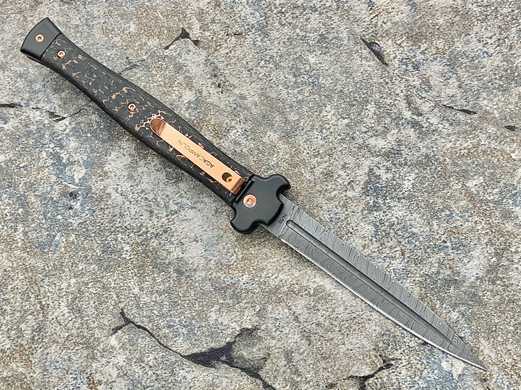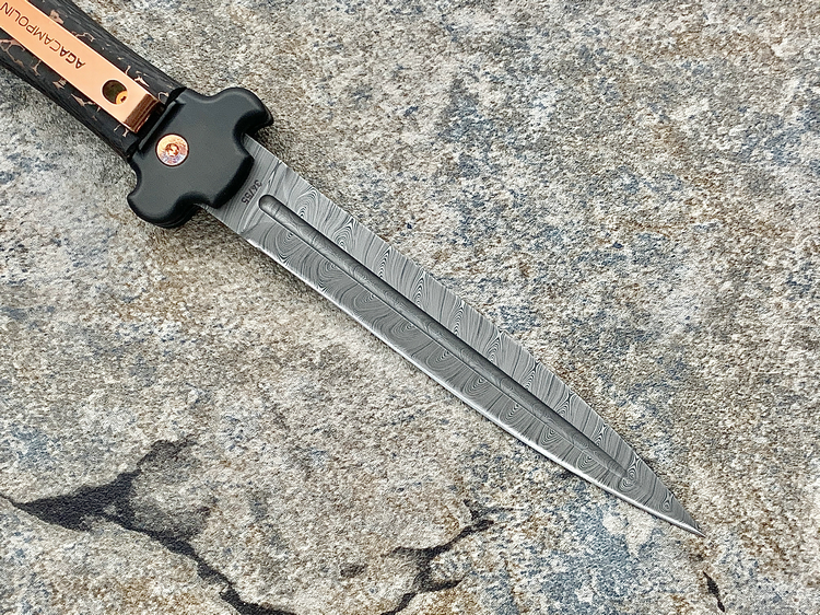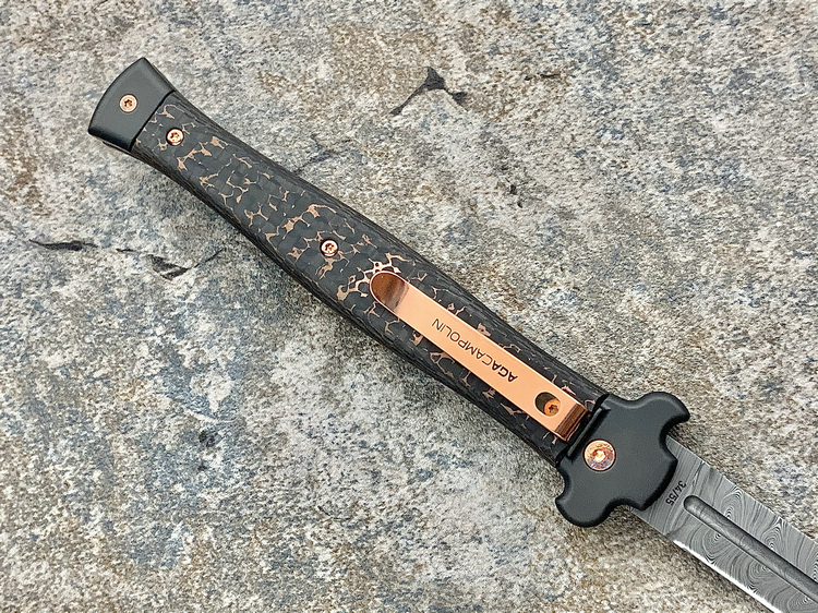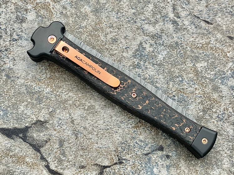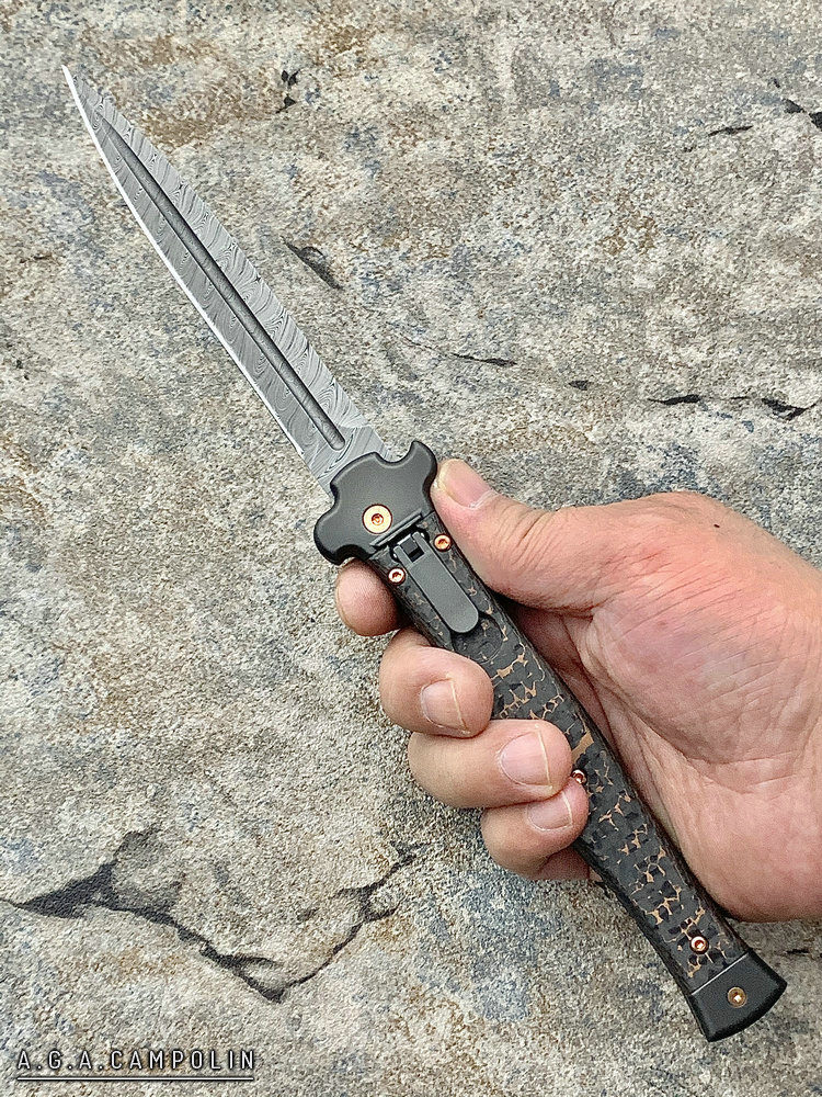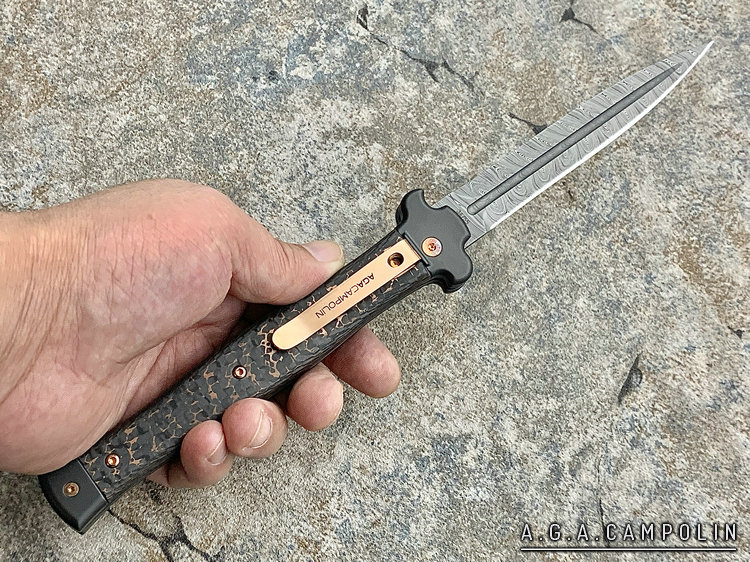 老安杰洛·坎波林(Angelo Campolin Sr. )1923年出生于意大利的马尼亚戈(Maniago)。二战前,他致力于完善他的制刀技术,并在这个时候制作了他的第一把刀片。战后,1947年,他创办了自己的公司,制作了30支标有“安杰洛·坎波林”的细高跟鞋(经典意大利侧跳)。虽然路程很远,他还是骑自行车去威尼斯卖。几年后,他开始与毛罗马里奥(Mauro Mario)建立合作关系,后者为许多美国进口商制造刀具,如Rosco、C.G.刀具、B.Svoboda、C.C.C刀具和其他美国市场刀具。而且,威尼斯和的里雅斯特的游客们也为这个“”讨厌“”的玩具而疯狂!安吉洛为38厘米和45厘米的大尺寸高跟鞋制作了工具。起初,这些是撬锁细高跟鞋,后来改为旋转垫片样式。在二战后的时代,坎波林是唯一一家生产这种尺寸的工厂。其他尺寸过去和现在都是由其他制造商生产的。20世纪60年代,他开始引入其他机制,包括锁回式。起初,这些都是用在切刀狩猎刀,然后也有一些细高跟鞋。它成为最流行的自动折叠猎刀。 20世纪70年代,安吉洛的儿子詹尼(Gianni ))开始在这家公司工作,他们专门为位于德国索林根的罗伯特·克拉斯公司(Robert Klaas company)折叠猎刀和手工折叠高跟鞋,上面有他们的吻鹤印记。这是猎鹰刀的开始,至今仍在营业。1999年,小安杰洛(Angelo Jr. ))21岁开始在公司工作。他第一次到美国去俄勒冈州参加刀展,展出了许多质量上乘的猎鹰折叠刀。他还喜欢快开刀,从这次展会和通过互联网与许多美国收藏家建立了关系和友谊。他开了自己的公司专门经营自动刀。有些是老安吉洛做的,有些是其他有独家协议的狂热工匠做的。这是他的公司AKC(Automatic Knives Creations, or Angelo Knives Campolin)的开始。 我们的目标是使用老刀工技术和传统提供高品质的自动刀。ANGELO CAMPOLIN JR.