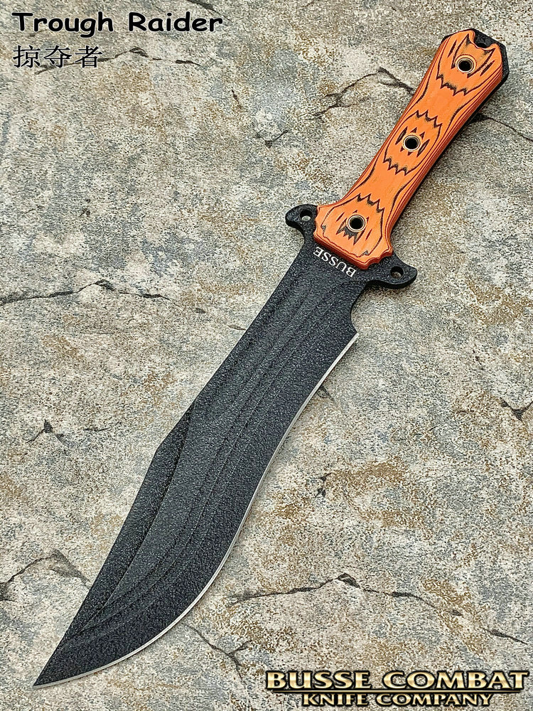 BUSSE 巴斯 Trough Raider 掠夺者 INFI刃材黑色涂层 橘/黑双色G10柄 战术直刀(暂无现货)