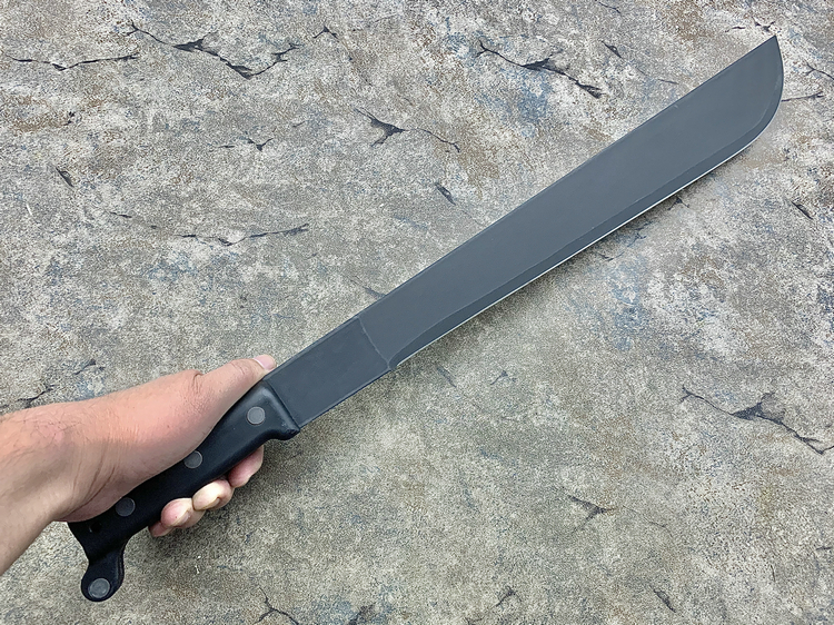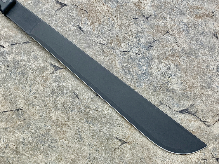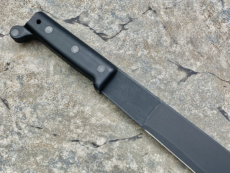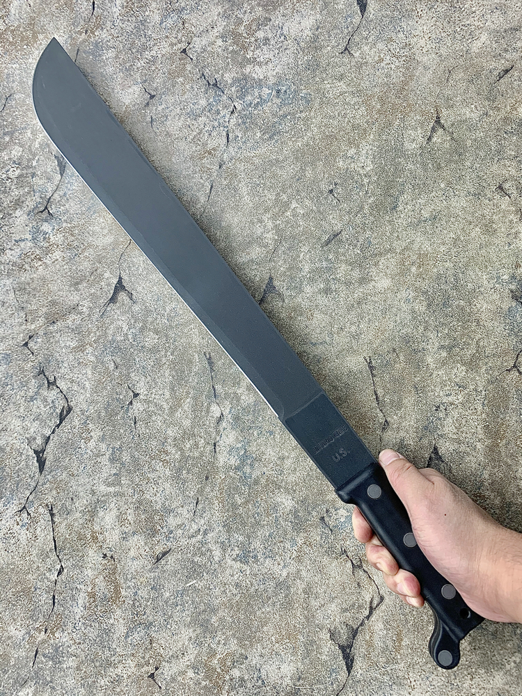 刀刃材质采用1095高碳钢,外层再覆黑色环氧化物,不易变质。握把則使用两片高触感防碎聚化物,加上钢制铆钉压制而成;此外,特別设计握把尾角,提供了更好的抓力,有效防止使用時,刀身滑动;美军越战18剁刀在越战时期是相当有名气的,并且为美国陆军所沿用至今,越南是一个雨林气候溼暖的国家,越战时期,美军在越南作战时,必须在深山里开山辟路,翻山越岭,而这把全长18英吋的18剁刀是最适合美国大兵使用的 。这把俗称越战18剁刀,在近代的战役中从不缺席的经典名刀。