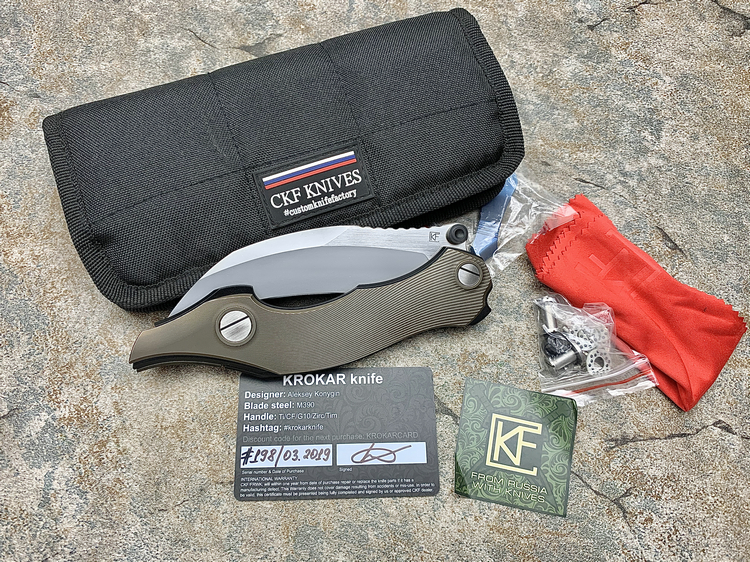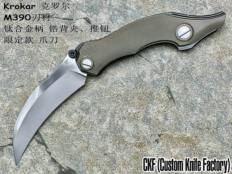CKF(Custom Knife Factory)Krokar 克罗尔 M390刃材 钛合金柄 锆背夹、推钮 限定款 爪刀