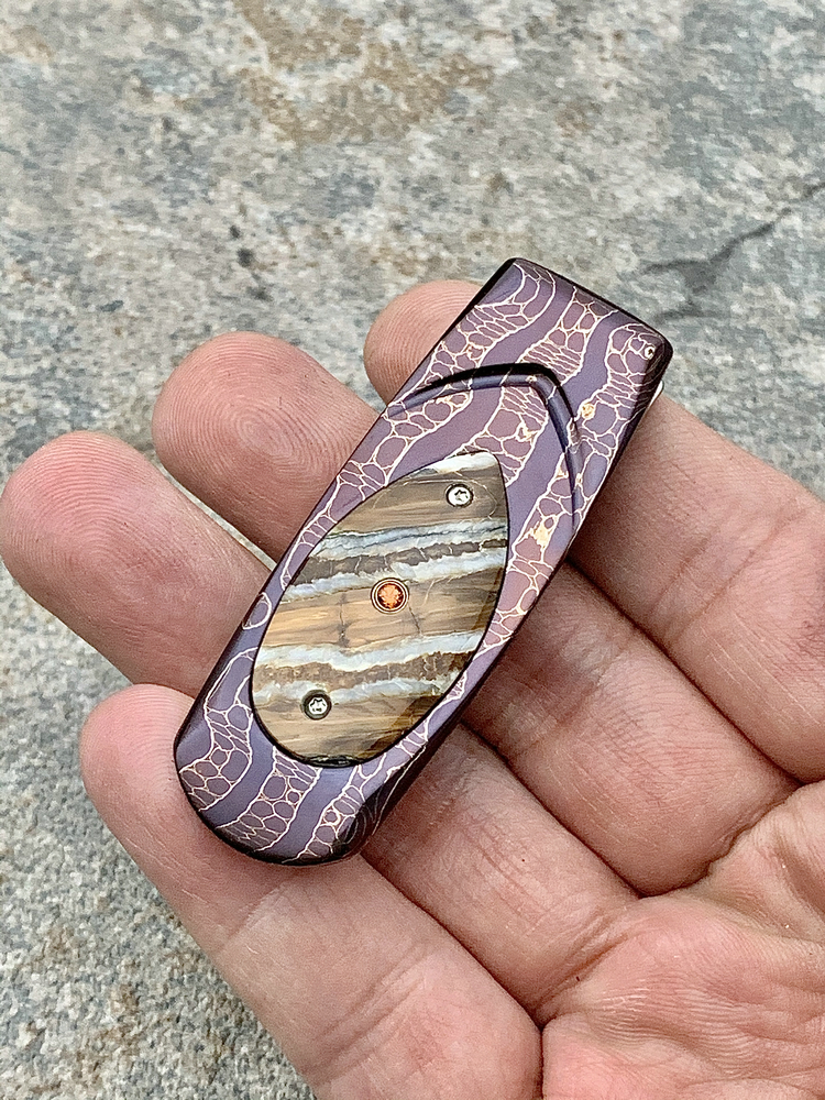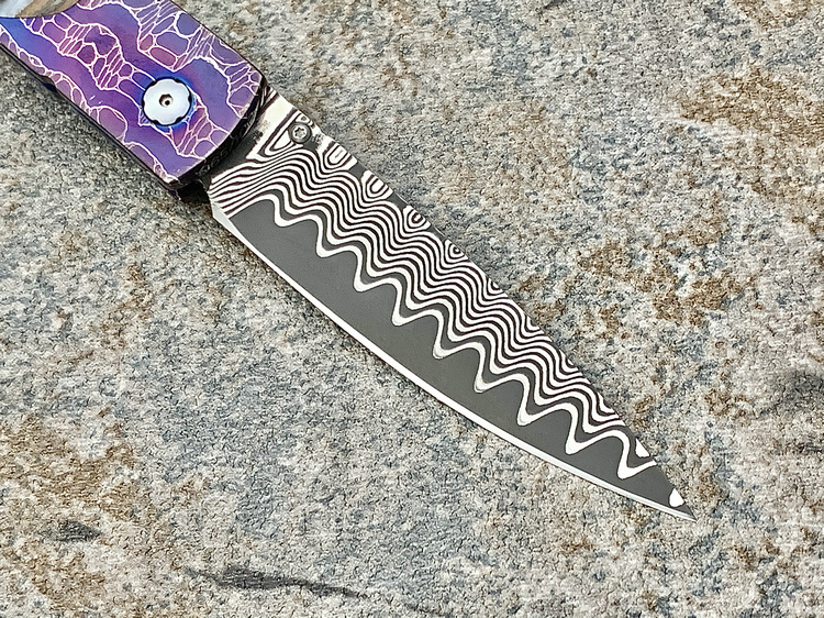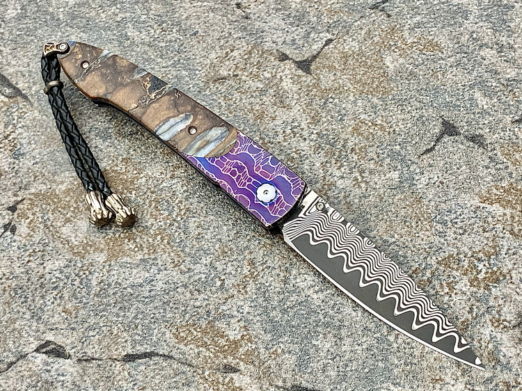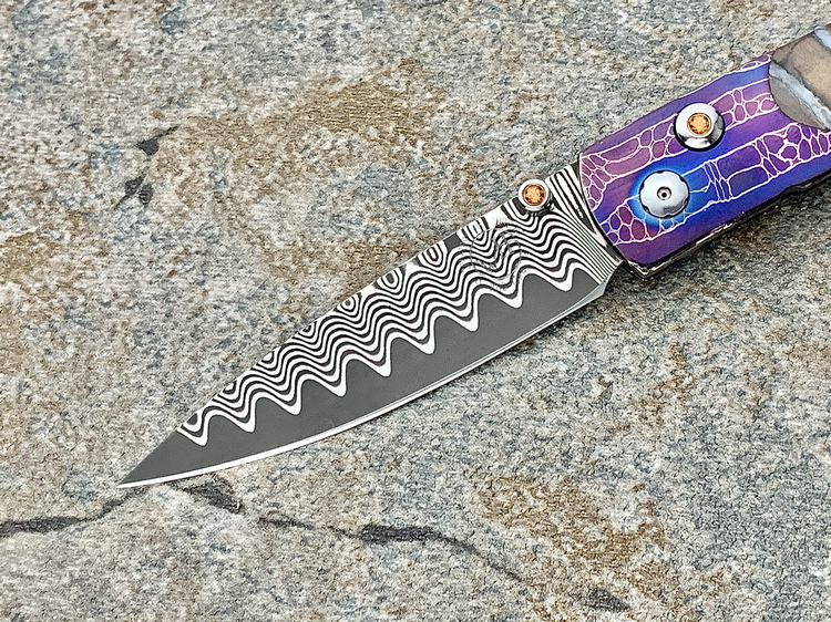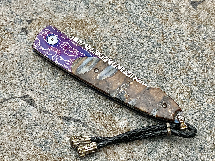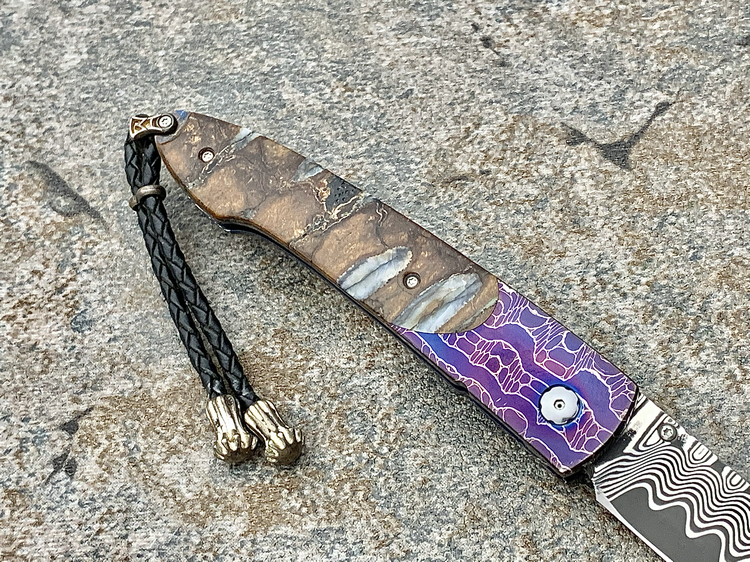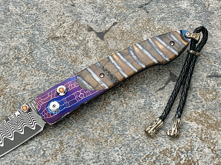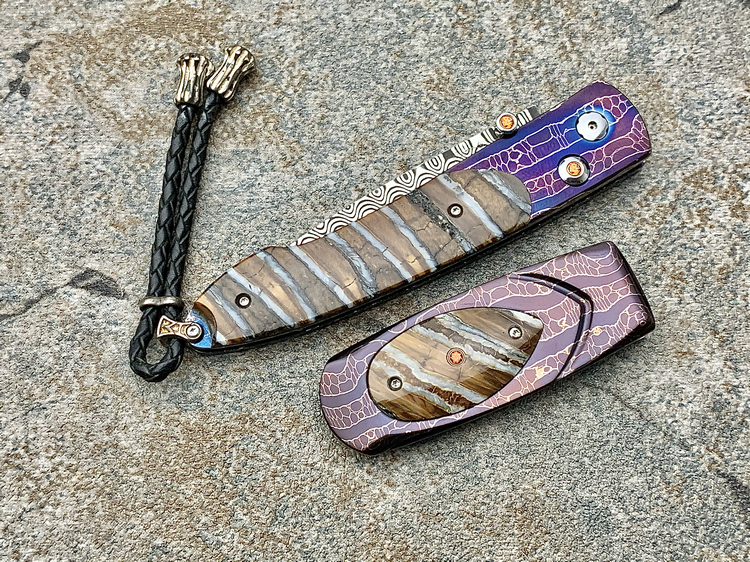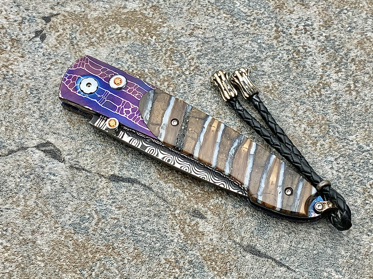 柄材: 猛犸臼齿化石+彩色大马士革刀枕