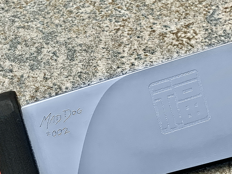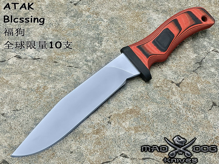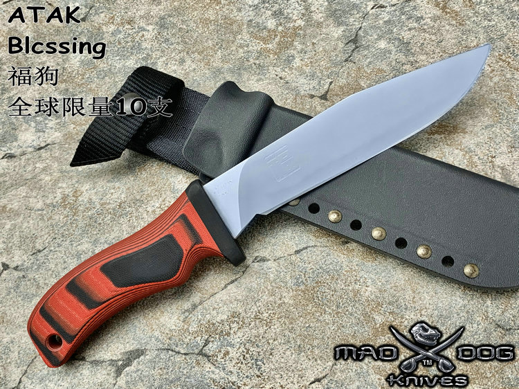 所有Mad Dog刀子及刀鞘系统都是以手工制作而成。Mad Dog钢材刀都是使用一种叫Starrett 496-O1的高碳工具钢,最独特的是它的热处理方式,先经过硬化(Hardened)然后再选择性回火(selectively tempered)而成。每个部分的热处理都不一样,刀锋部分的硬度是63-67HRC,在刀背部分则是50-55HRC,刀尖部分是59-61HRC,手柄部分48-52HRC,整刀分为4个部分处理,这种科学的方法成为分段热处理。这种方法可以使刀具既有很高的硬度又有较强的韧性,劈砍,穿刺,切割,撬砸等,能适应各种高强度工作。