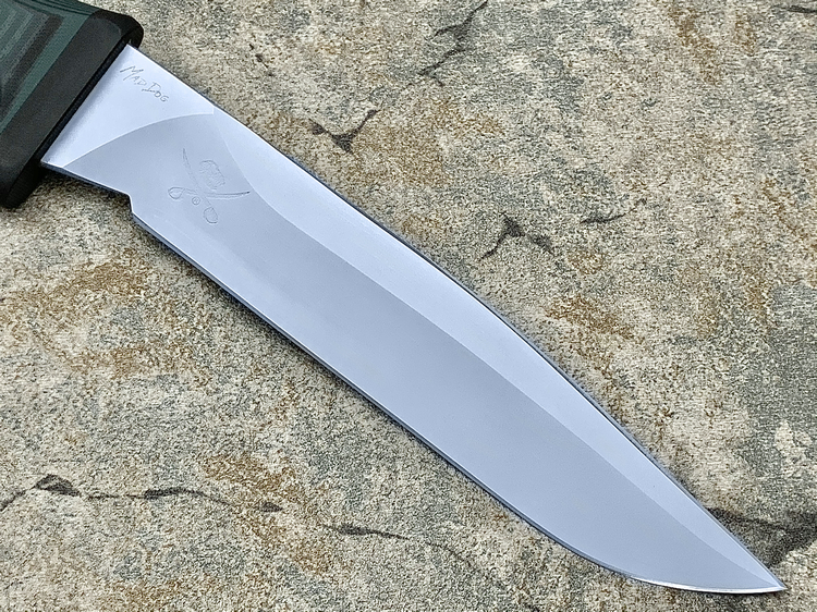 所有Mad Dog刀子及刀鞘系统都是以手工制作而成。Mad Dog钢材刀都是使用一种叫Starrett 496-O1的高碳工具钢,最独特的是它的热处理方式,先经过硬化(Hardened)然后再选择性回火(selectively tempered)而成。每个部分的热处理都不一样,刀锋部分的硬度是63-67HRC,在刀背部分则是50-55HRC,刀尖部分是59-61HRC,手柄部分48-52HRC,整刀分为4个部分处理,这种科学的方法成为分段热处理。这种方法可以使刀具既有很高的硬度又有较强的韧性,劈砍,穿刺,切割,撬砸等,能适应各种高强度工作。