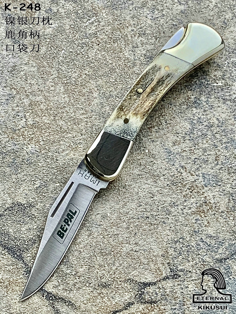 Kikusui 関菊水 K-248 KMARK 鹿角柄 镍银刀枕 440刃材 mini口袋刀(现货)