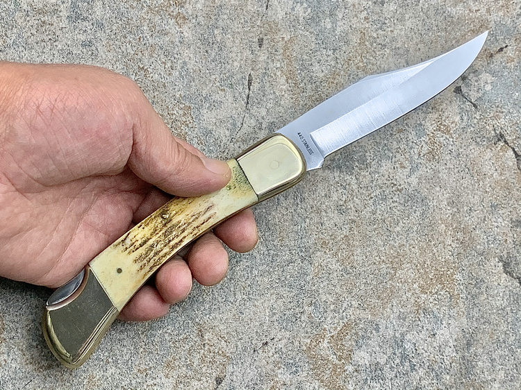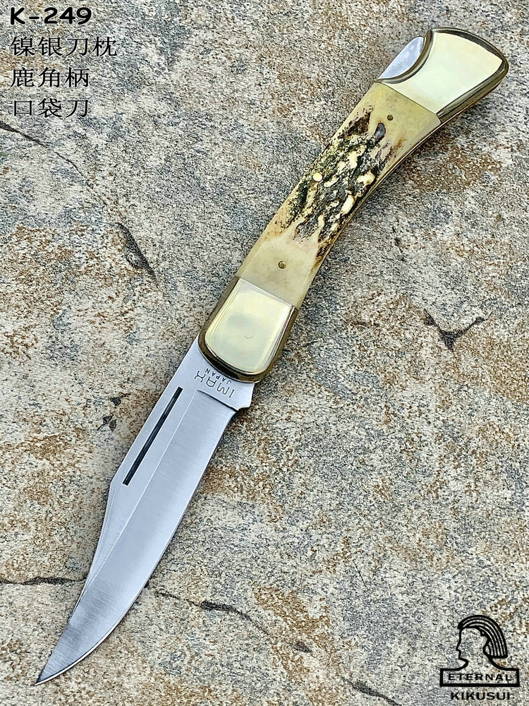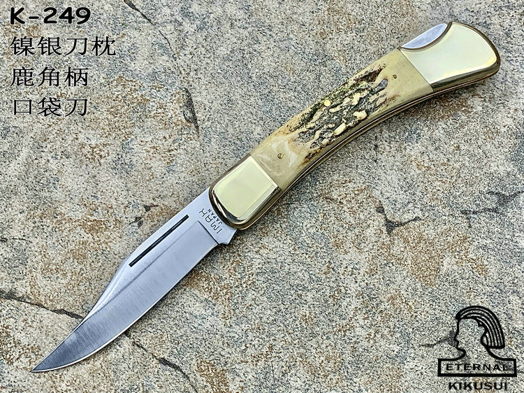 Kikusui 関菊水 K-249 KMARK 鹿角柄 镍银刀枕 440刃材 口袋刀