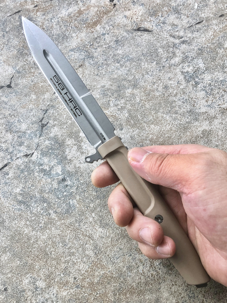 全长:235mm 刃长:111mm刃厚:4mm 刃宽:21mm 刃材:N690 硬度:58HRC 重量:90g含鞘122g 产地:意大利 附件:自锁战术K鞘