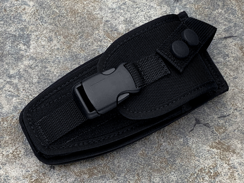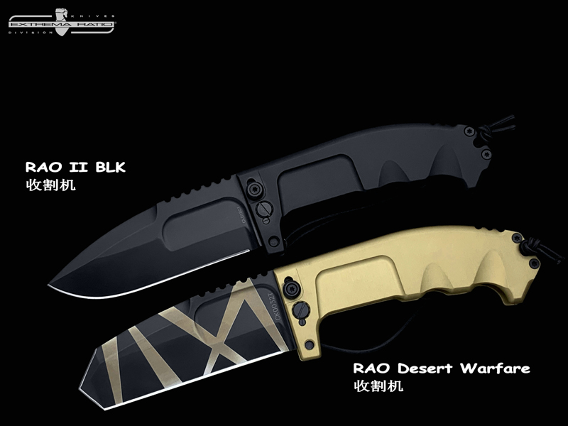 2006 年 6 月,第 185 中队。侦察和目标采集“FOLGORE”(185°RAO)委托 Extrema Ratio 根据有关特定操作活动的特定规范开发一种特殊刀具。成果就是 RAO,RAO不是一把大的折叠刀,而是一把紧凑的生存和工作刀,带有沉重而坚固的刀片。打开时的锁定机制特别耐用,因为它由安全系统辅助,将其变成一个真正的直刀。可以用两只手操作打开和关闭,通过护手部位的锁定销锁定刀具,以最大限度地减少操作过程中自伤的风险。由于它的重量,刀片实际上是一个真正的收割机。为保证锁定机构的 100% 密封,由于刀具的重量造成的重度使用和打击的暴力,使用了螺纹钢销,通过在此处拧上销钉,它插入刀片和用户的手指之间,也提供了重要的心理效果。护套是该系统的重要组成部分,因为除了容纳钻石磨刀器外,它还允许您将刀打开入鞘,或关闭在特殊的前袋中。使用 MOLLE 系统将护套固定在用户身上的系统允许将其佩戴在战术背心和通用腰带上。