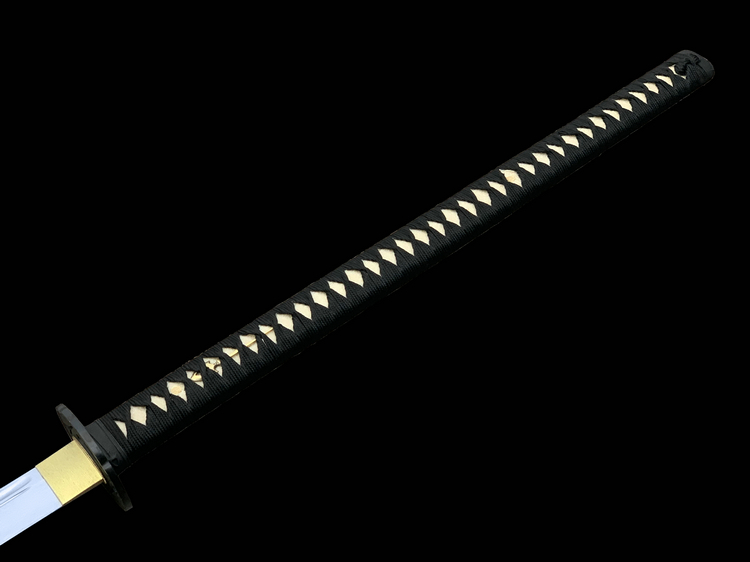 柄 材: 真鲛皮柄(内至黄铜,黑色系绳缠绕) Cold Steel刀厂一直坚持使用传统材料来制造日本刀,护手(镡)和柄头(头)都用黑铁铸成,而且做工考究。黄铜鞘口(鲤口)是用全手工制作抛光而成。手柄上包裹的是真鲛皮,并且用黑线用传统十字交叉方式缠裹。刀刃都用1060高碳弹簧钢,由经验丰富的职业刀匠手工锻造打磨,按照传统日本铸刀方法制造而成。每一把刀都配有一个黑色漆面木鞘。