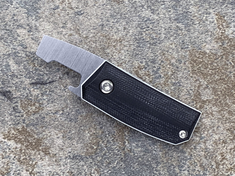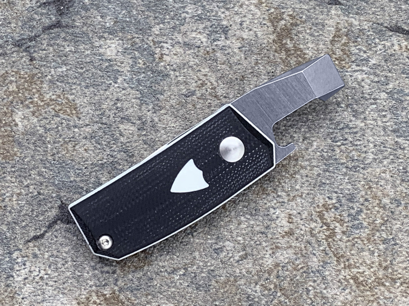 大师贾里德·欧瑟(Jared Oeser)设计,米卡塔柄镶嵌黑桃A 巧妙的融合了开瓶器+一字螺丝刀设计,在闭合时就是一个实用的小工具。