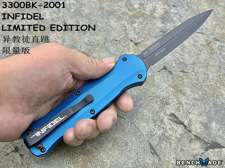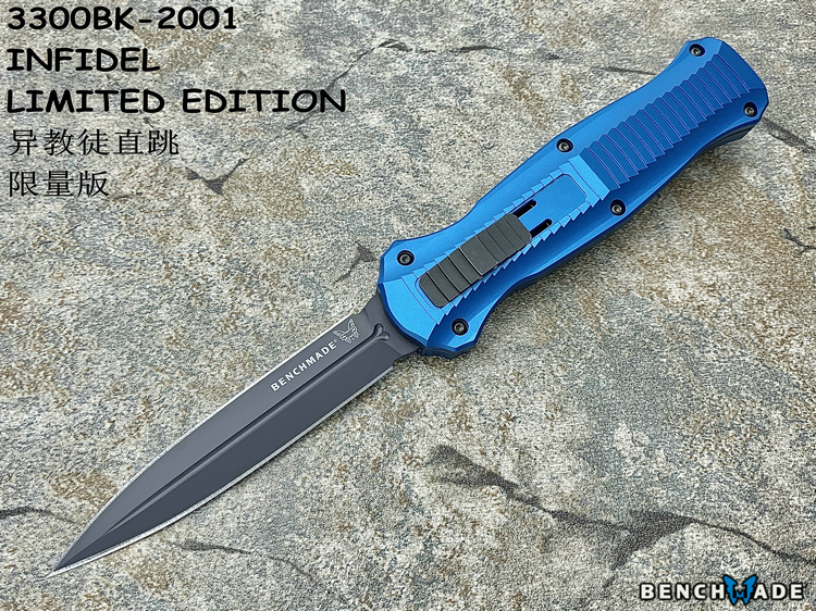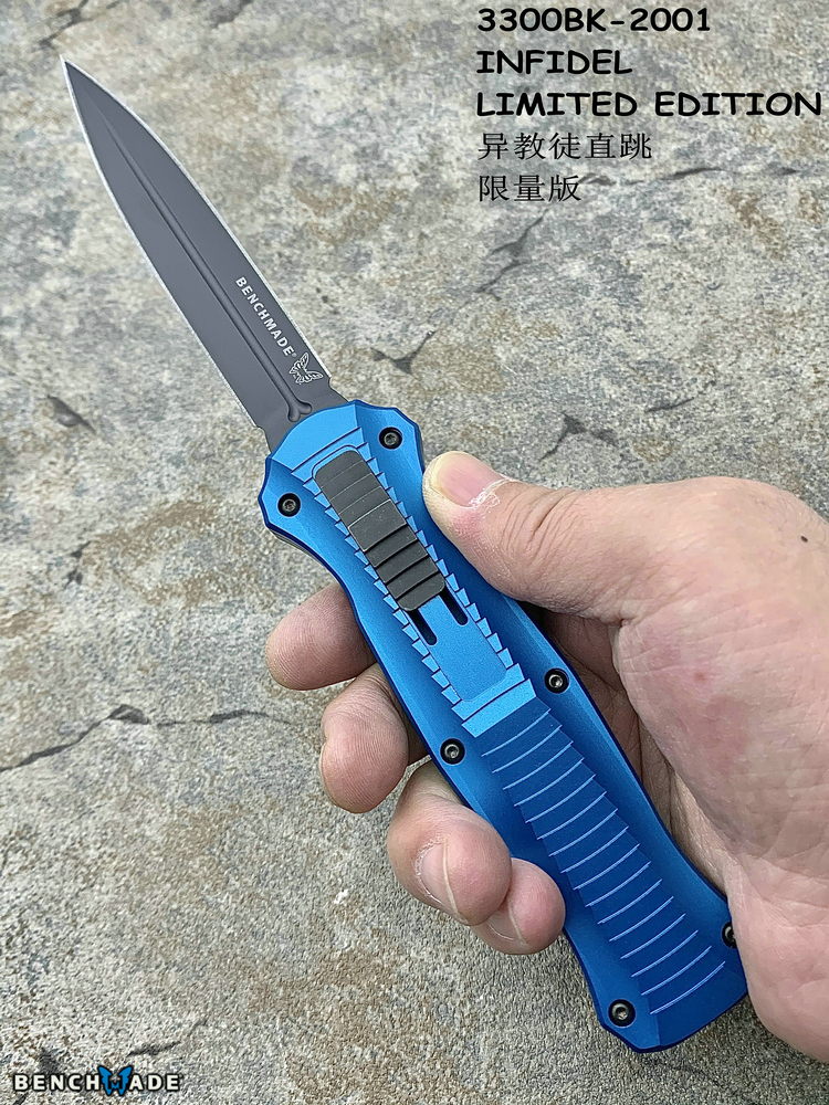 Benchmade 蝴蝶 3300BK-2001 INFIDEL 异教徒 S30V刃材 蓝色T6航空铝手柄 限量版 双锋直跳(暂无现货)