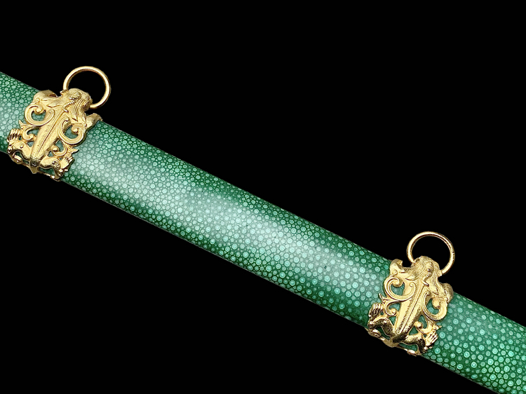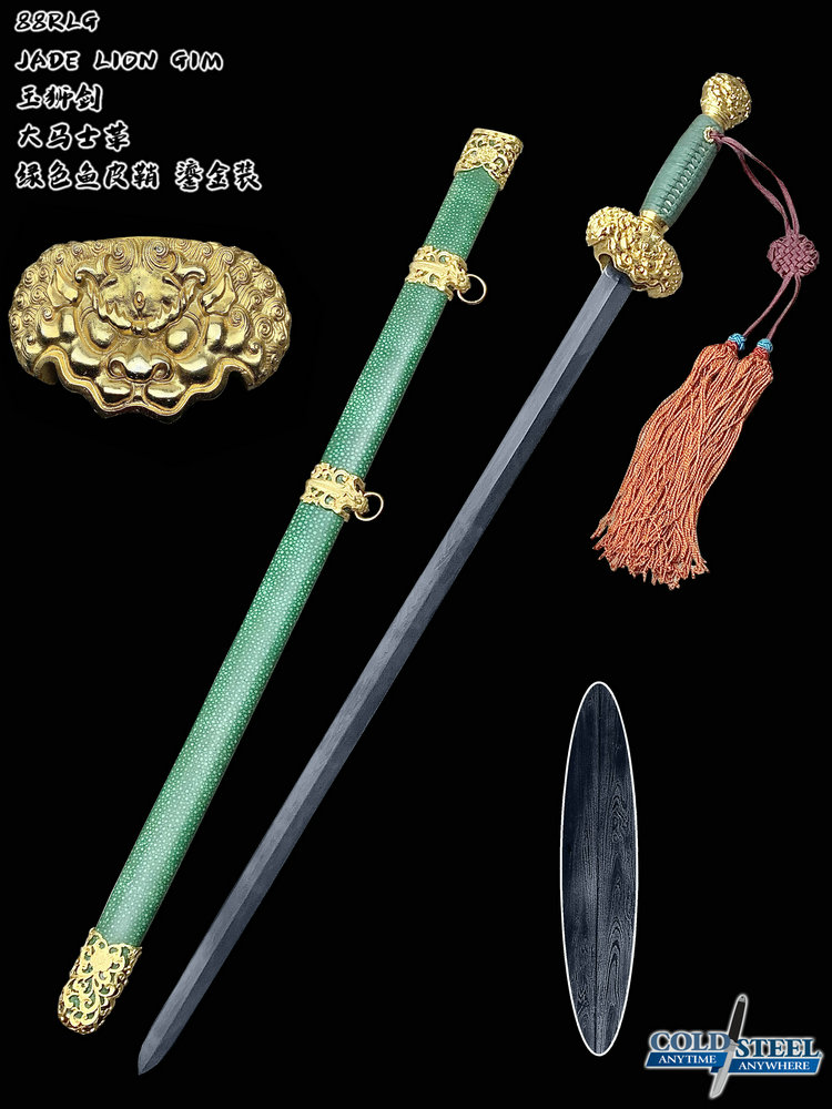 ColdSteel冷钢 88RLG JADE LION GIM 大马士革刃材 绿色鱼皮鞘 鎏金装具 玉狮剑(预定)