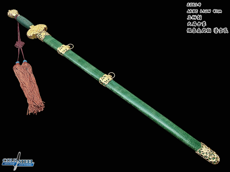 ColdSteel冷钢 88RLG JADE LION GIM 大马士革刃材 绿色鱼皮鞘 鎏金装具 玉狮剑
