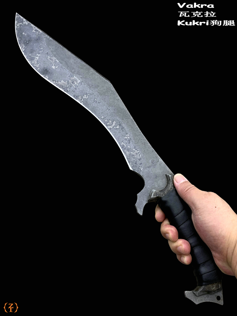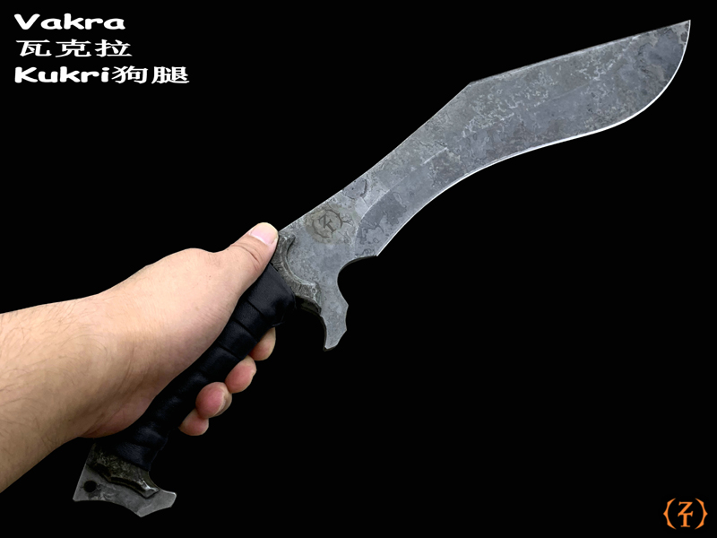 Vakra仿照尼泊尔廓尔喀狗腿的设计,这是一种古老的、经过时间考验的设计,在传说中的廓尔喀士兵手中,已经建立了王国并维持了帝国,如今仍被部署在全球各地的廓尔喀雇佣兵使用,并作为尼泊尔斩杀水牛的利器。Vakra比传统的廓喀尔狗腿标准刀片要长几英寸,刃厚也要薄一些,这使她成为一个快速而高效的刀具。