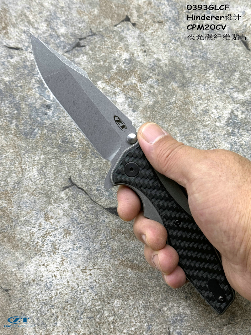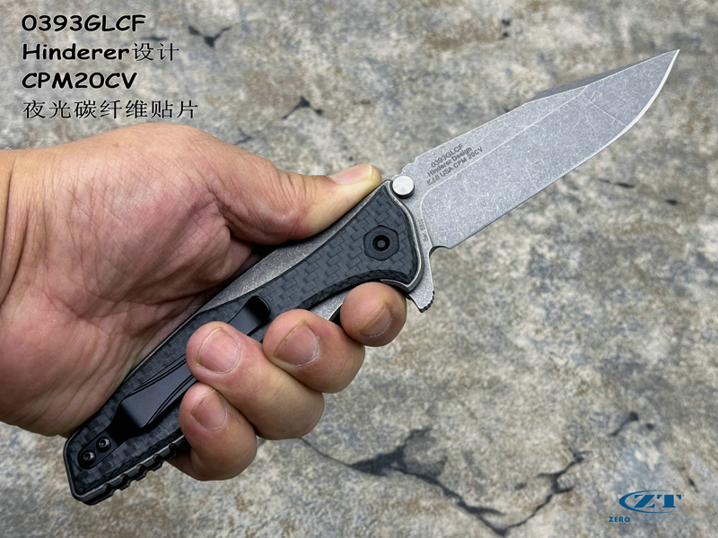 ZT 零误差 0393GLCF Rick Hinderer设计 CPM20CV刃材 夜光碳纤维贴片 钛合金框架锁 spanto头战术折刀