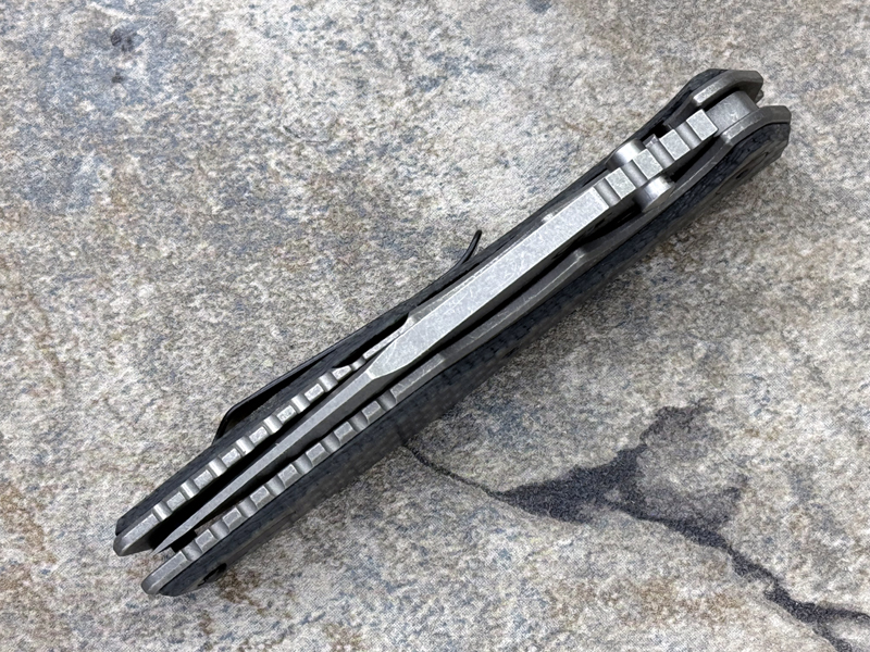 0393首次推出时大受欢迎。 现在,ZT提供了一个真正独特的版本,具有Rick Hinderer的手工效果(表面处理)和深色发光的碳纤维手柄贴片。 0393GLCF具有Rick的“ spanto”刀片形状,spanto-Rick Hinderer专利刀头,独特的Spanto,既有传统水滴刀头的切割功能,又秉承了Tanto刀头的不俗穿刺能力 。它还带有可逆口袋夹,可以接受各种Hinderer自定义硬件,因此您可以真正使用它。