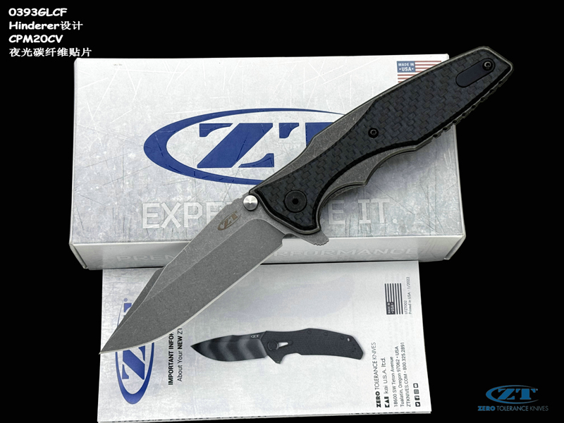 ZT 零误差 0393GLCF Rick Hinderer设计 CPM20CV刃材 夜光碳纤维贴片 钛合金框架锁 spanto头战术折刀(现货)