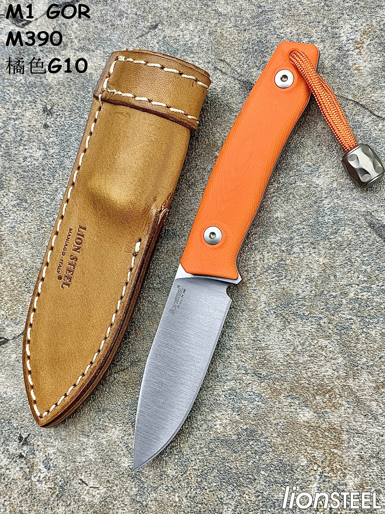 Lion Steel 钢狮 M1GOR M390刃材 橘色G10柄 精致手工皮套小直(暂无现货)