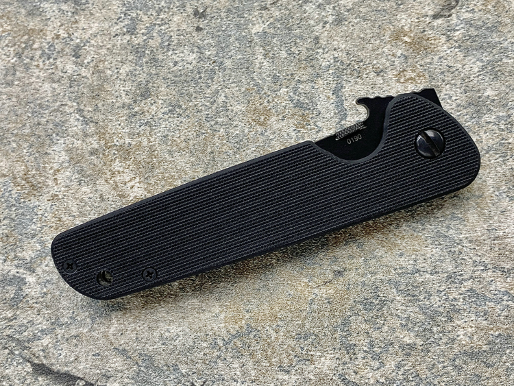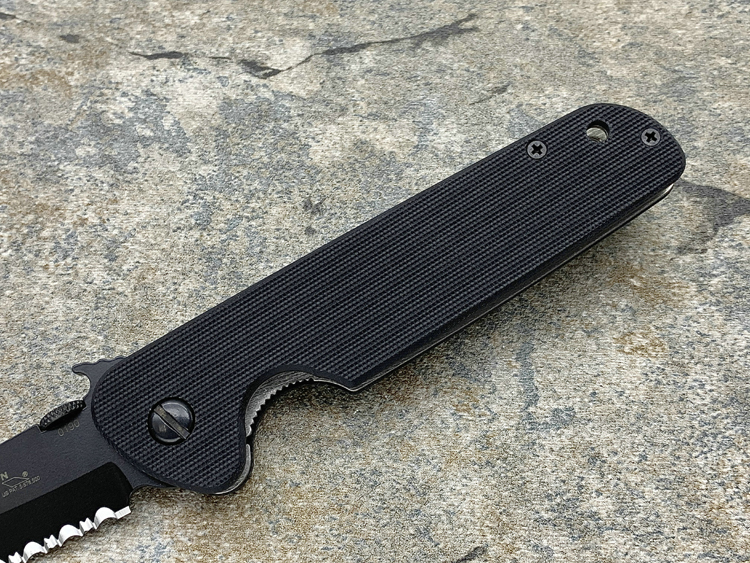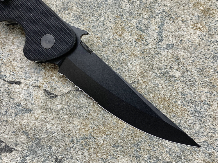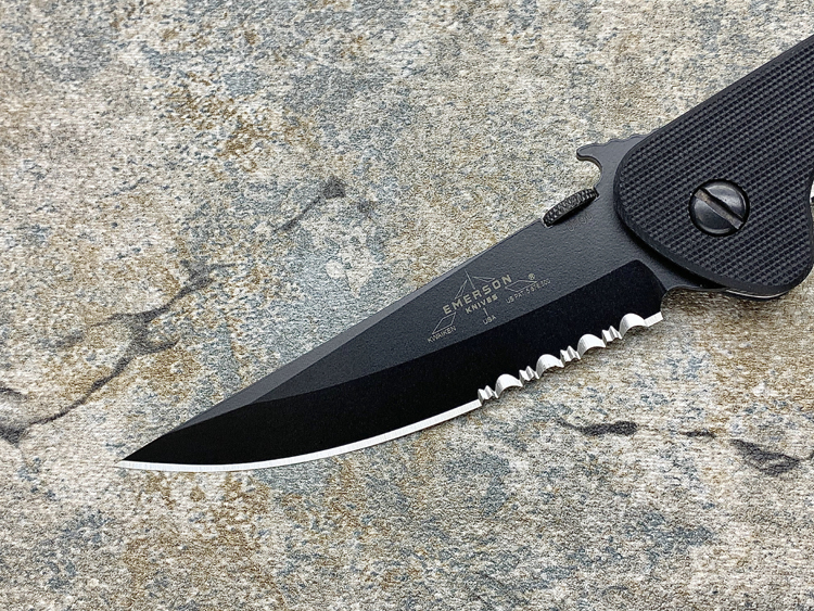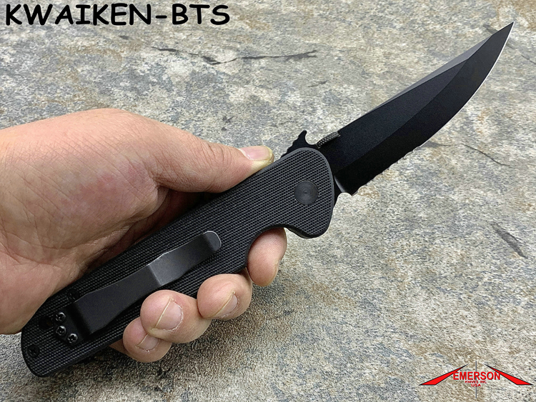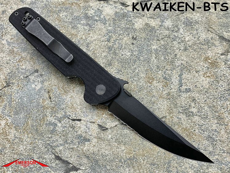 Emerson说“Emerson Tactical Kwaiken是对日式怀剑的现代诠释,意在隐身携带以供极端近距离格斗之使用” 该刀重152g,全长228mm,闭合130.5mm,航空航天级钛衬和锁定,艾默生黑色纹理G10手柄贴片。154CM不锈钢黑色涂层,带有快开钩和拇指推刀盘。 Kwaiken是Emerson签名系列中最受欢迎的刀具之一。