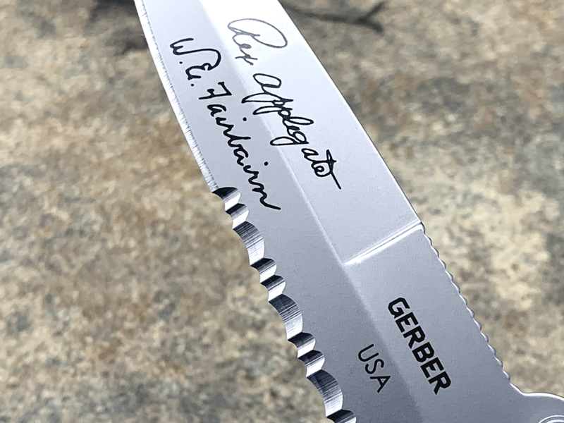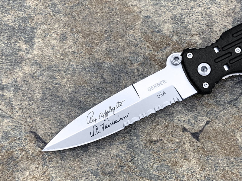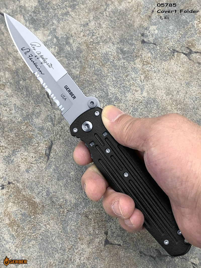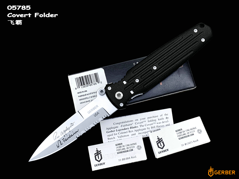 原产地: 美国 #05785此款APPLEGATE-FAIRBAIAN系列由CIA知名教练美国安普吉特(Mr.Colonel Rex Applegate)上校-一个比任何人更了解近身战斗的人所设计,并且也身为战斗刀设计者,依自己的作战经验,参考不同的任务需求,发展设计了此款刀子,此款APPLEGATE系列,不论单手正、反手握、双手握攻击推进式皆可,单手可以快速翻转,依据不同状况,使用不同的持刀方法,材质为最新154cm高碳钢不锈钢钢材,不锈钢核心结构,增加额外的强硬度。握把为特别的聚合物填充尼龙把手架构。刀刃是银色,刃面经弹珠抛光处理,附有背夹,以方便消费者取用,可夹在裤子及背包上。 是CIA圈内知名系列刀具 1.每支刀刃上,皆有设计者Mr.Colonel Rex Applegate的亲自签名。 2.设计者Mr.Colonel Rex Applegate已于公元1998年逝世-得年84岁高寿,祇有在生前,设计几款刀具,绝对值得珍藏。 此把刀为第一代戈博战斗折刃(Combat Folder)改良型,尺吋较小,非常适合东方人使用,刀身钢材采用了最好的154不锈钢,快单手开合是此款刃最大特色,此外,戈博在刀轴背部增加了第二道安全保险装置,能让使用者更安全的发挥此刀之用途,可以在最短时间内发挥最大的效果。 刀背部份为假刃设计(未开锋)。每把刀上有安普吉特的签名,并注编号,深具收藏及实用价值。 此款刀具隶属Gerber Applegate-Fairbaim种类的刀,是单手开启的,可适用许多情况。每支皆有不同序号,以提高收藏价值。 此款刀子设计不论单手正、反手握、双手握攻击推进式皆可,单手可以快速翻转,依据不同状况,使用不同的持刃方法。 表面再经滚砂处理,若不慎有锈斑,可轻易擦拭除去。精密可调整枢轴,栓扣紧固扣钮。 双斜面刀身设计,刀刃背面为假刃设计流畅设计,握把具有止滑效果,就算水中使用也可以,手感极佳,不易脱落。