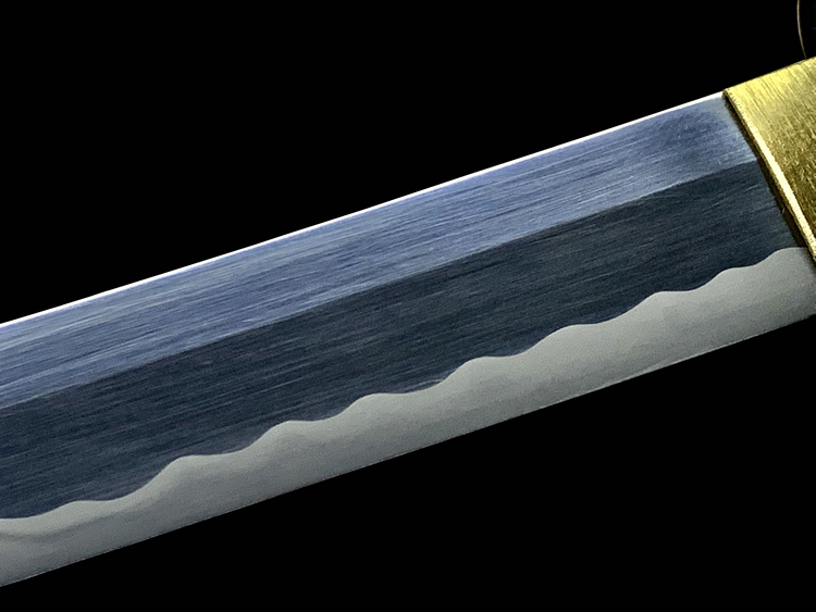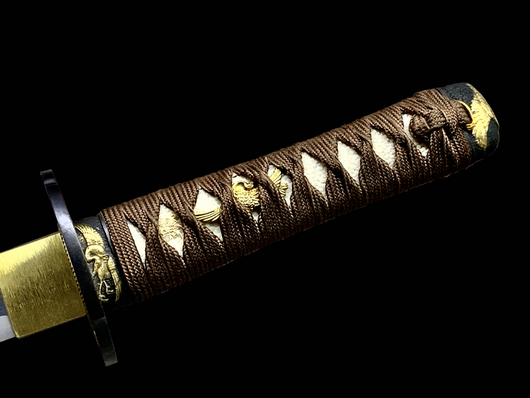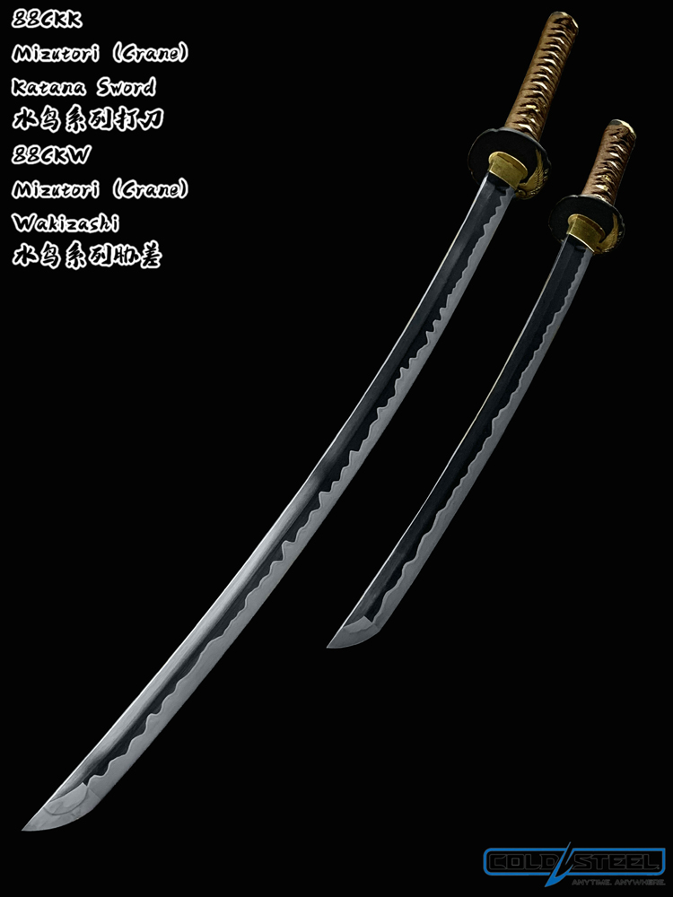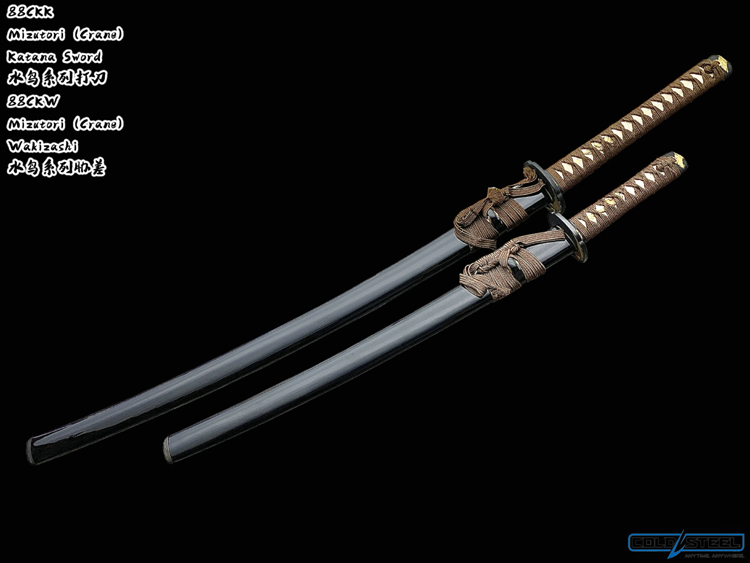 Cold Steel公司一直坚持使用传统材料来制造日本刀,护手(镡)和柄头(头)都用镍银铸成,而且做工考究。黄铜鞘口(鲤口)是用全手工制作抛光而成。手柄上包裹的是真鲛皮,并且用咖色线用传统十字交叉方式缠裹。刀刃采用1095高碳钢,由经验丰富的职业刀匠手工锻造打磨,按照传统日本铸刀方法制造而成。每一把刀都配有一个黑色漆面木鞘。