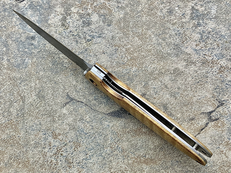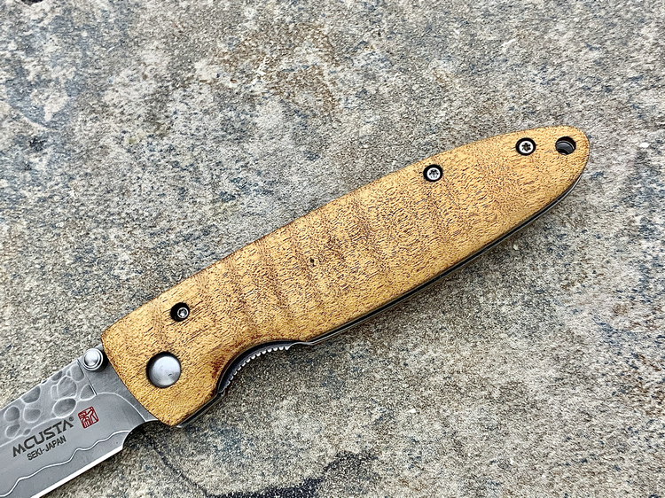 全长:195mm 刃长:78mm 刃厚:2.9mm 刃宽:22mm 刃材:VG-10 San Mai 硬度:60HRC 闭合:111mm 重量:87g 柄材:日本枫木 产地:日本