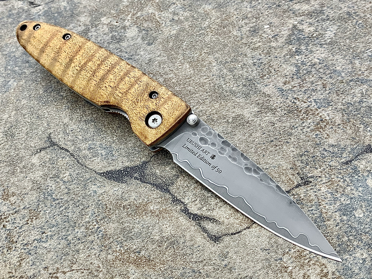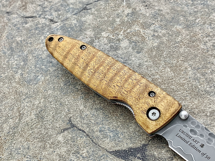 日本传统漆艺日本枫木,精选的日本枫木在多层漆艺处理后美轮美奂,这是一个耗时的艺术作品。 VG-10核心三美钢镐地作日本传统锤纹处理和武士刀的“烧刃”纹理。以完美的匹配漆艺手柄。 每把刀的正面都有Mcusta标识和红色的印章,背面是URUSHI ART 漆限量50支。刀柄上刻有“001-050”编号。每把刀都有一个用以展示的皮盒!