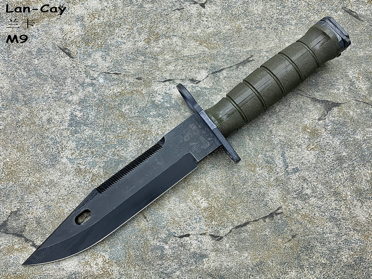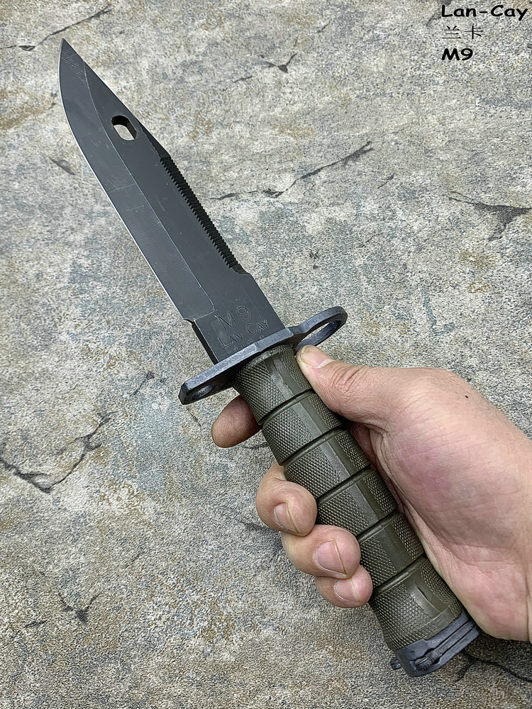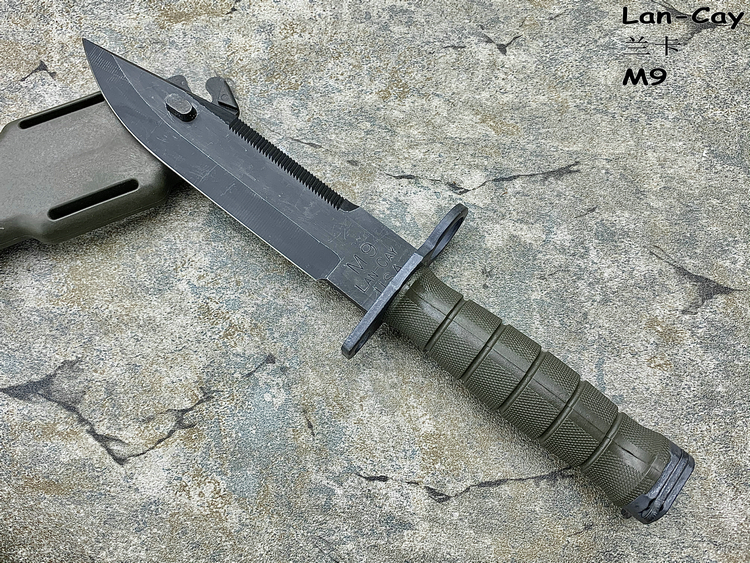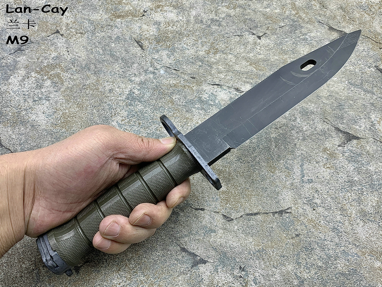 M9刺刀是一把质量上乘的现代刺刀,功能较多,在野战中遇到意外时它定会派上用场,使士兵化险为夷,保全性命。 1992年:Lancay Inc·首度获得美国陆军M9系列刺刀承制合约。刀身注记:M9 LANCAY USA。