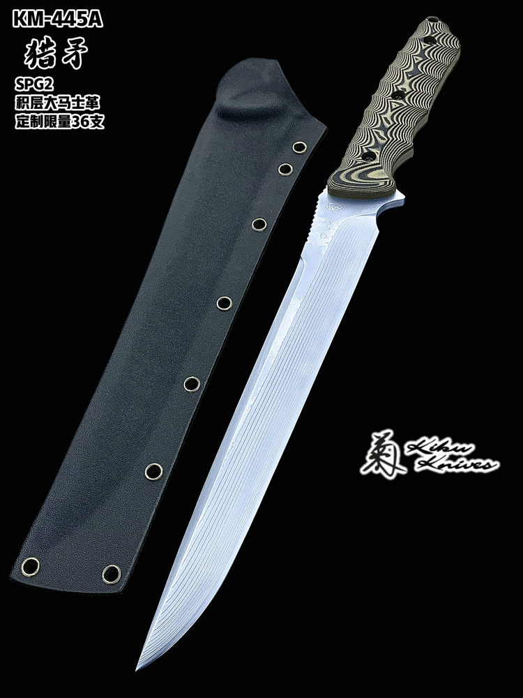 Kiku matsuda 松田菊男 KM-445A Stout Spear 猎矛 Limited限量36支 SPG2积层大马士革刃材 双色G10柄 战术直刀(暂无现货)