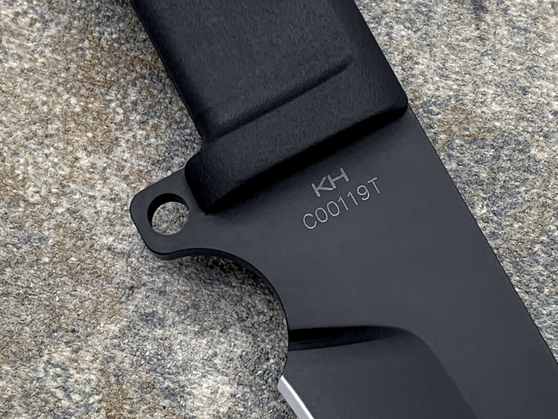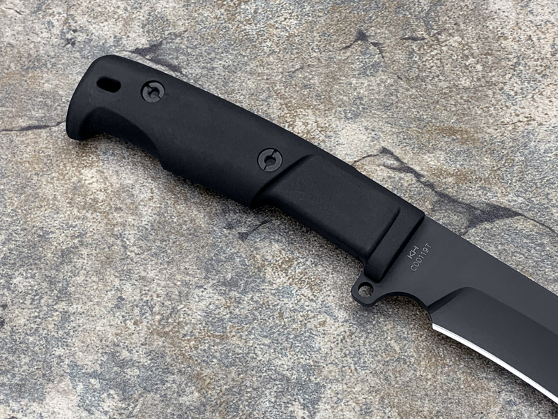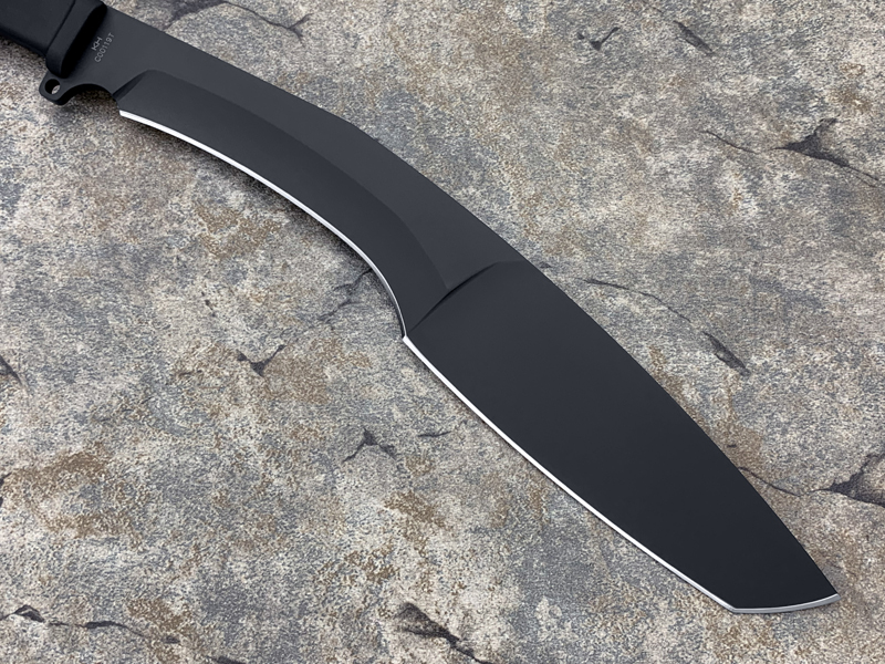 这是一款经典之作。“kukri”是尼泊尔的一种多用途刀源自古希腊镰刀形弯刀,因在英国皇冠下服役的廓尔喀军团而闻名。它是一把顶部沉重的弯刀,重心靠前,使其能够在保持长刀多功能性的同时充当斧头。Extrema Ratio开发了两款这样的工具,KS小号、KH大号,融合了古代和现代的设计理念。两者都采用组合研磨。靠近握柄的类似剃刀的凹式研磨可产生细而锋利的刀刃,而不会影响刀片背面的整体厚度。刀刃的前端部分是大平磨刃面,角度适当,可以轻松穿透木材和植被。虽然类似的工具通常由较软的钢合金制成,以获得韧性和易于研磨,但我们能够使用坚硬的B?HLER N690钢获得足够的韧性,而刀锋又具有卓越的锋利保持性。