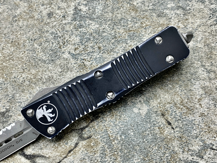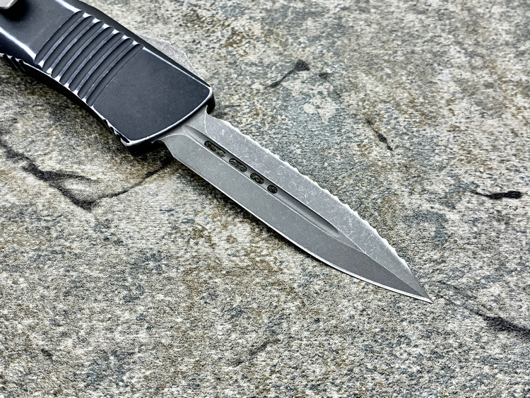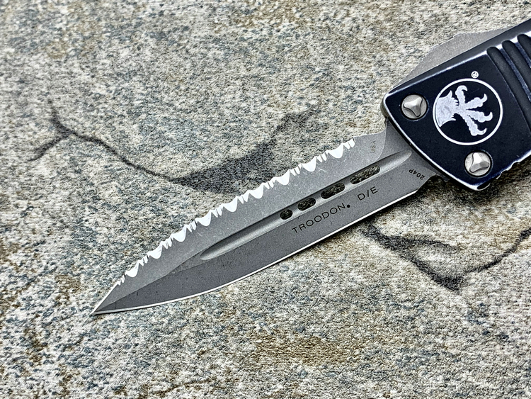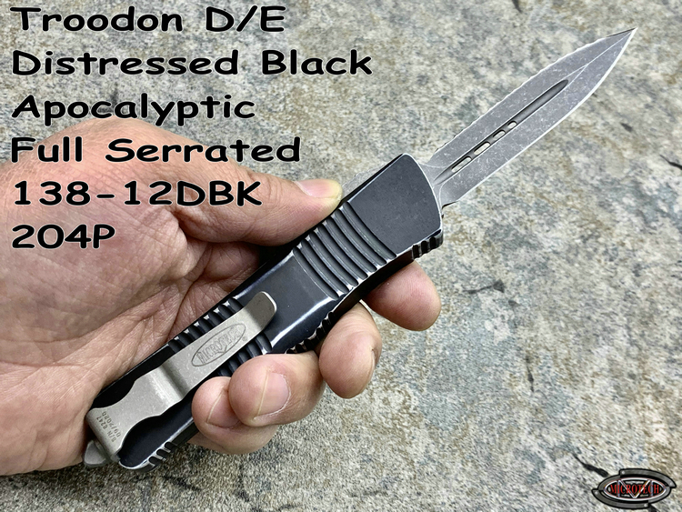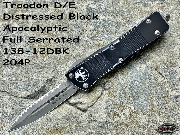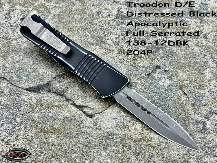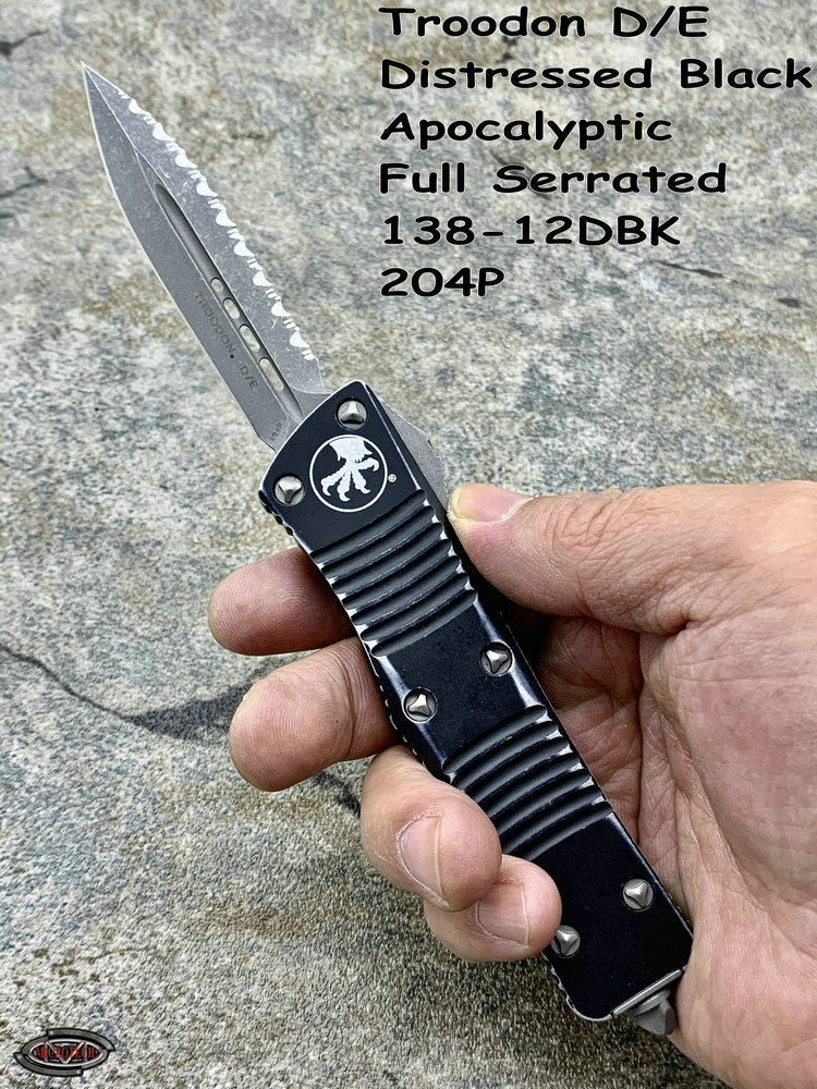 Microtech 微技术 138-12DBK Troodon 伤齿龙 D/E Distressed Black Apocalyptic Full Serrated 204P天启刃 战损柄全刃/全齿双锋直跳