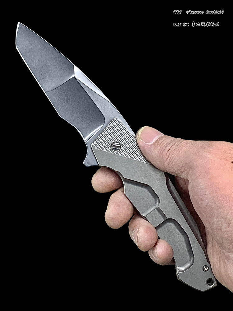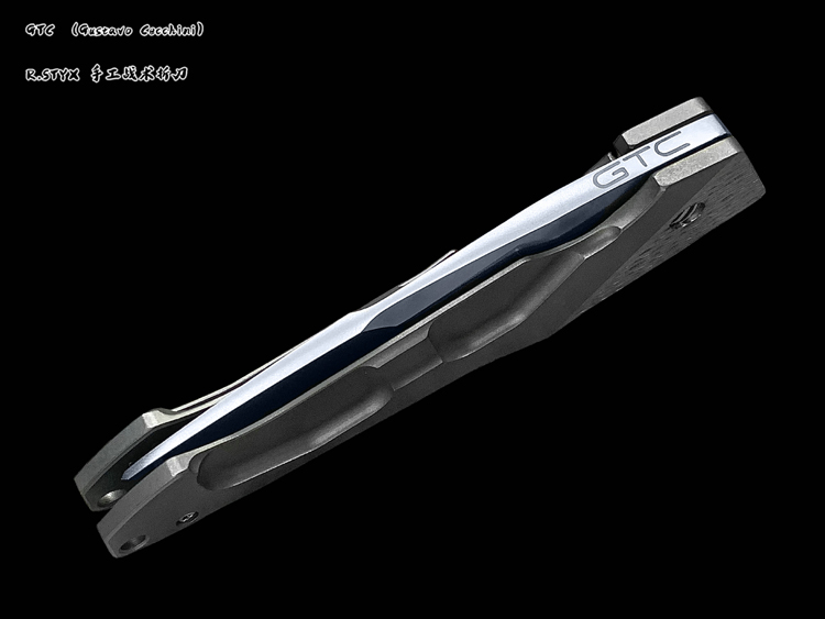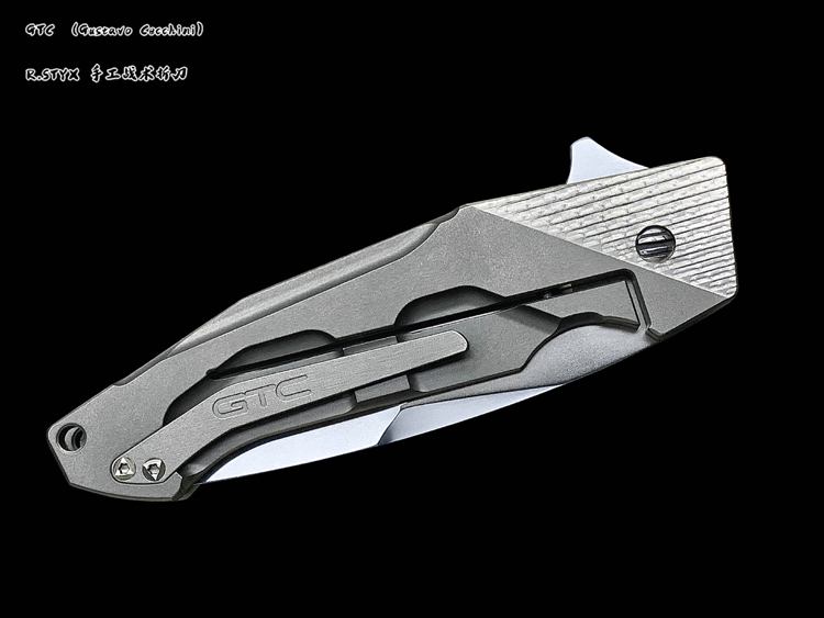 GTC ,本名Gustavo Cecchini,是一位来自巴西里约热内卢的一线战术刀匠刀匠。他自学成才,擅长以削磨法制作结构简洁的一体锁折刀,出道初期就获得了2006年巴西圣保罗刀展最佳新人奖、2007年巴西圣保罗刀展最佳折刀以及最佳刀具奖。在他制作的刀中, 有一个共同点, 即是借用金属材料的刚柔并济和整体色彩搭配, 表达出金属本身光洁,质感和力量感。使人不由自主的会问:这是金属的吗?值得一提的是,他的口袋夹也都完全自己加工,从不购买半成品。GTC的作品特点鲜明,辨识度非常高。