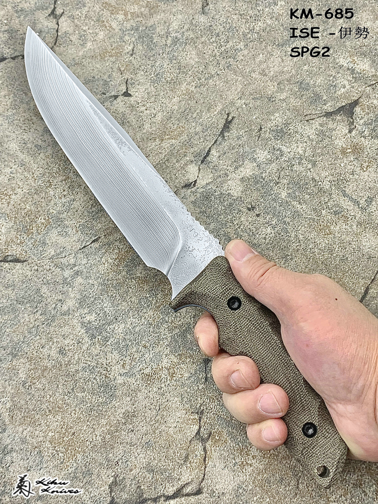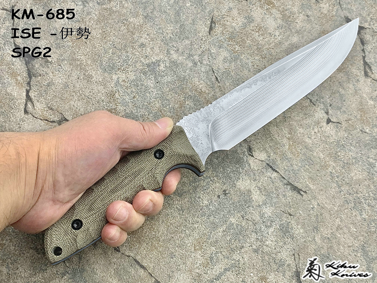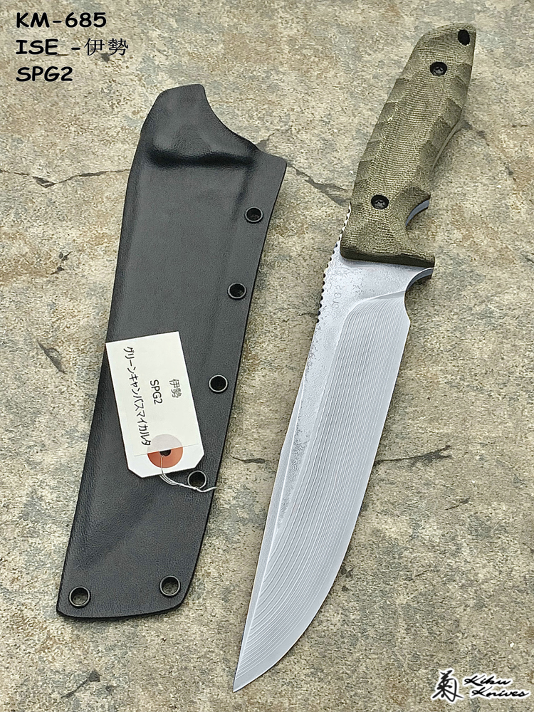 Kiku matsuda 松田菊男 KM-685 ISE 伊勢 SPG2积层大马士革刃材 米卡塔柄 战术直刀
