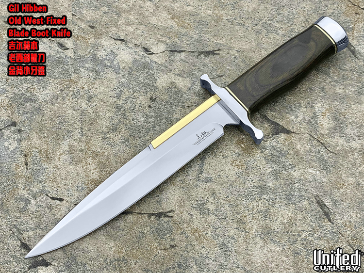 Gil Hibben以全新的Hibben Old West靴刀的形式重新诠释了他著名的老西部刀。镜面抛光刀刃黄铜刀背。迷人的pakkawood手柄提供优雅的外观,带有古老的西方风格。