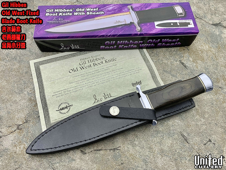 United Cutlery 联合刀具 GH5047 Gil Hibben Old West Fixed Blade Boot Knife 吉尔赫本 老西部靴刀 小号金背牙签(现货)