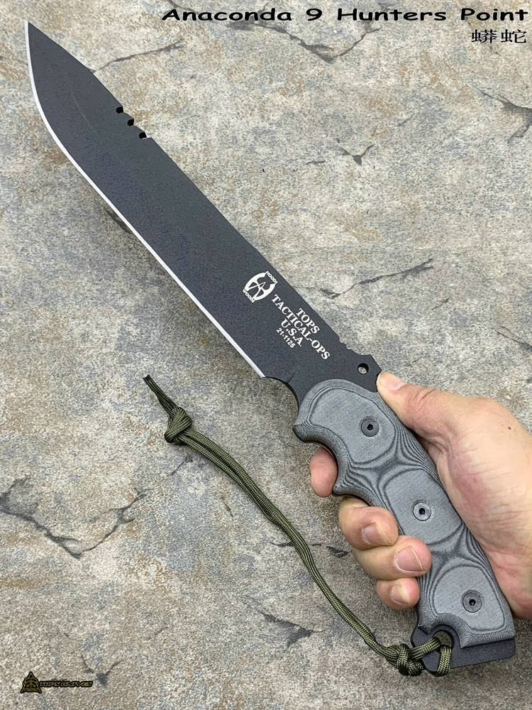 TOPS(Tactical OPS USA )战术行动 Anaconda 9 Hunters Point 蟒蛇 水滴头米卡塔柄战术直刀